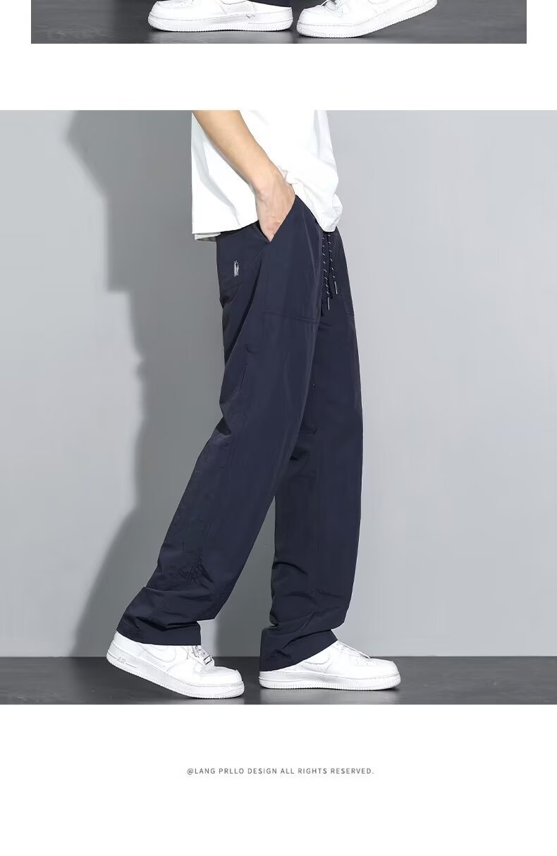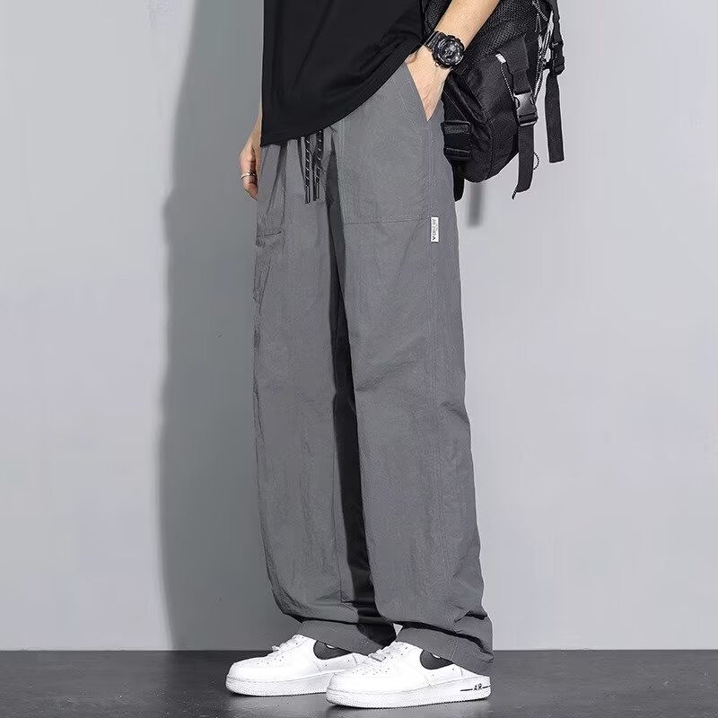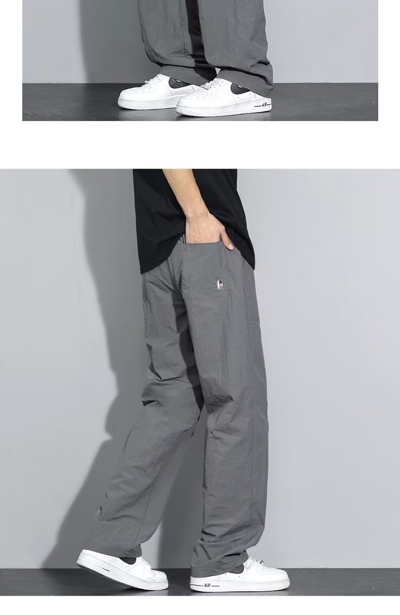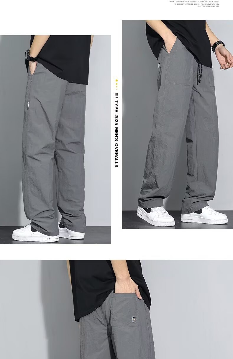 아메리칸 스타일 오버올 남성 여름 얇은 통기성 낙하산 충전 바지 루즈 스트레이트 캐주얼 롱 팬츠