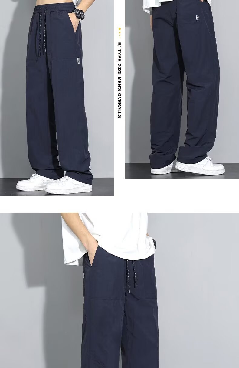아메리칸 스타일 오버올 남성 여름 얇은 통기성 낙하산 충전 바지 루즈 스트레이트 캐주얼 롱 팬츠스토어 가기