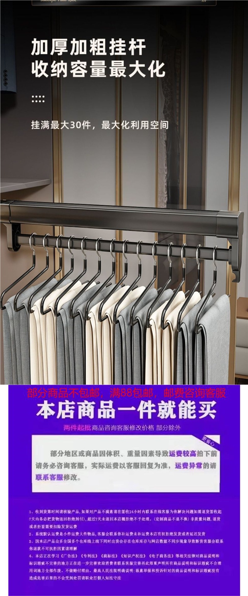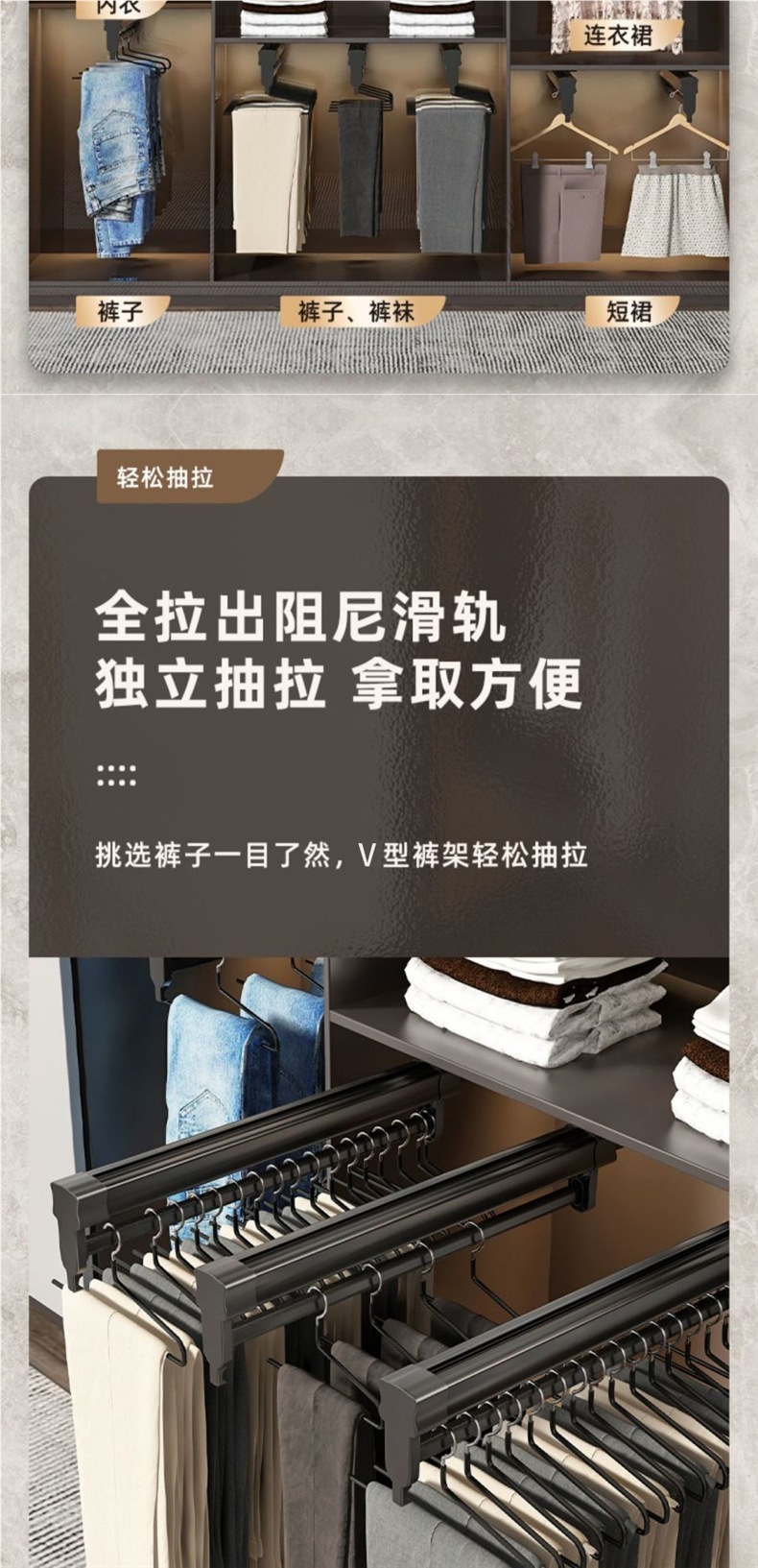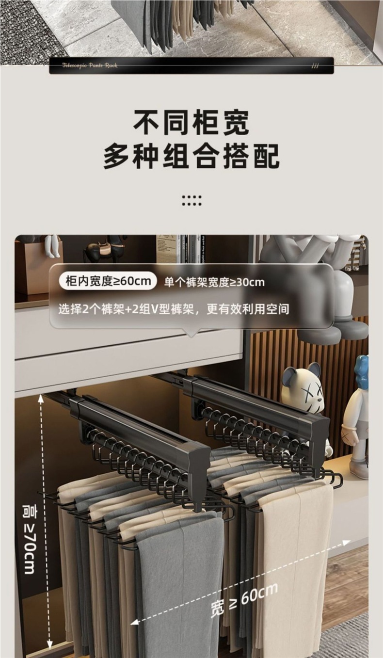 옷장 텔레스코픽 팬츠 랙 옷장 풀아웃 텔레스코픽 팬츠 랙 무음 댐핑 트랙 스토리지 풀탑 랙스토어 가기