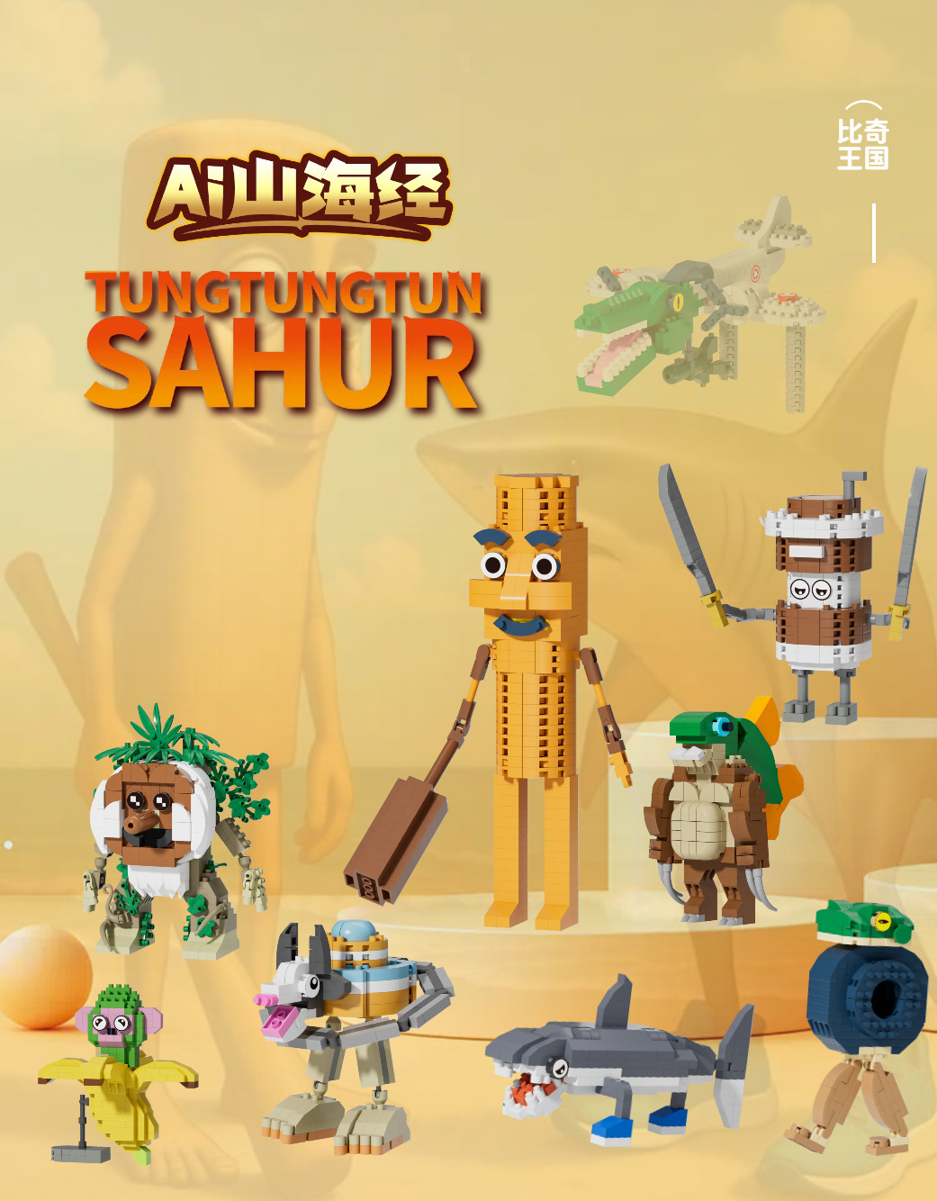 국경 간 인기 AI 산과 바다 이야기 나무 막대기 인간 원숭이 손 모델 추상 상어 작은 빌딩 블록 장난감 도매 배송스토어 가기