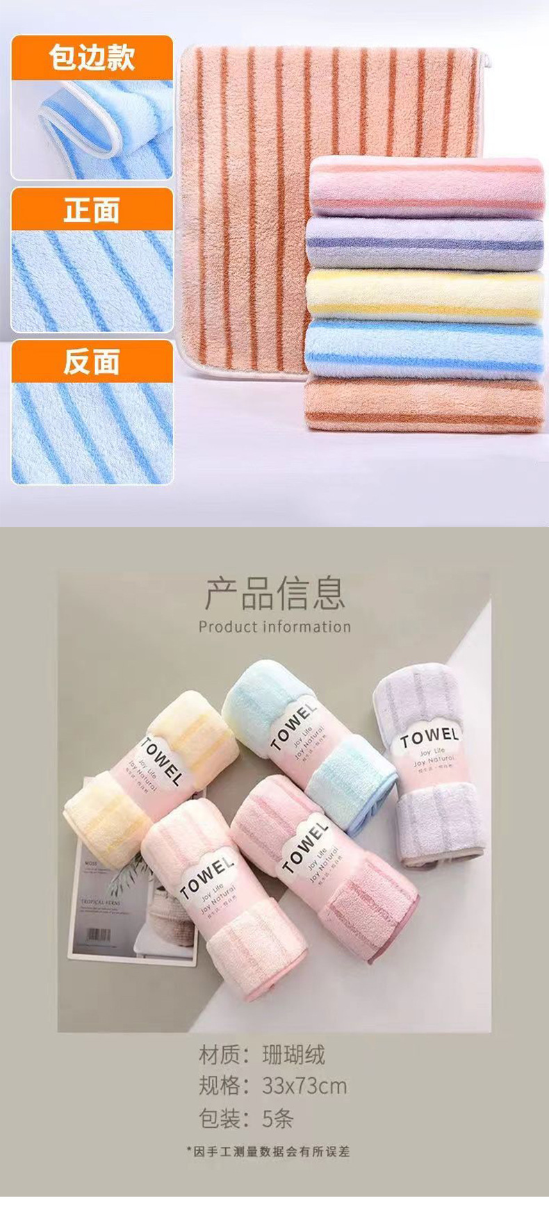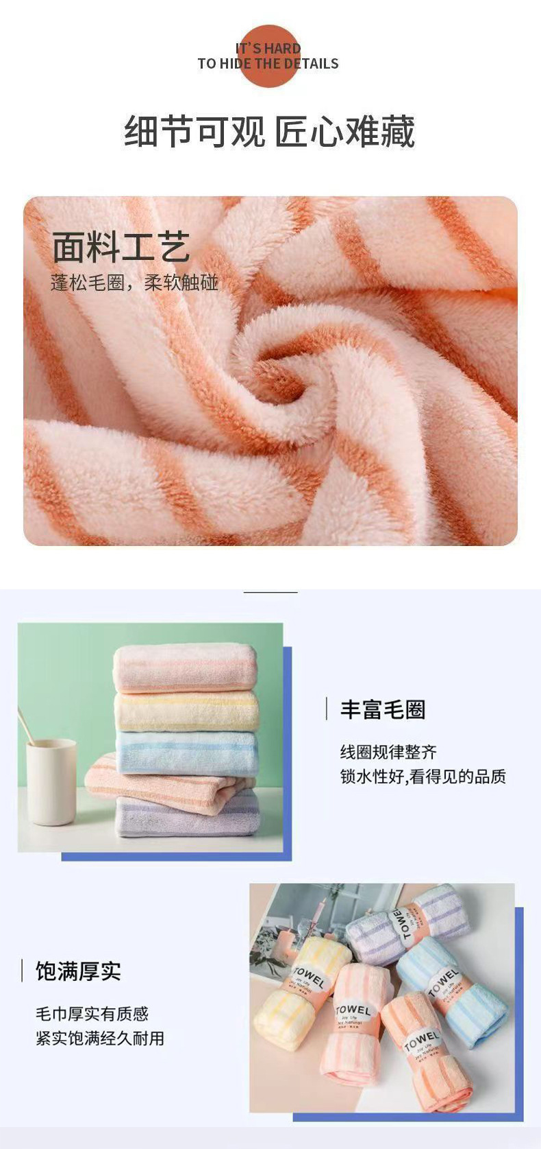 공장 도매 산호 벨벳 수건 줄무늬 세안 선물 결혼식 답례 선물 부드러운 흡수성 보푸라기없는 원피스 드롭 배송