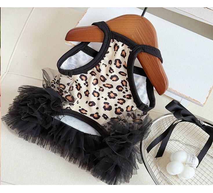 여름 신작 일본과 한국 스타일의 섹시한 표범 무늬 애완견과 고양이 옷 테디 비숑 라이트 럭셔리 메쉬 스커트