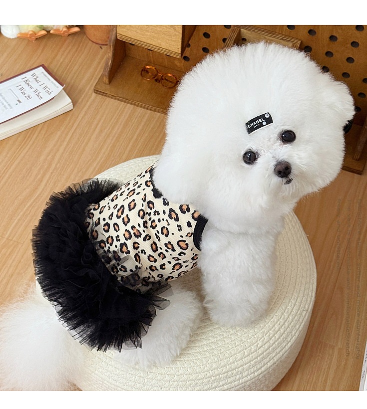 여름 신작 일본과 한국 스타일의 섹시한 표범 무늬 애완견과 고양이 옷 테디 비숑 라이트 럭셔리 메쉬 스커트스토어 가기