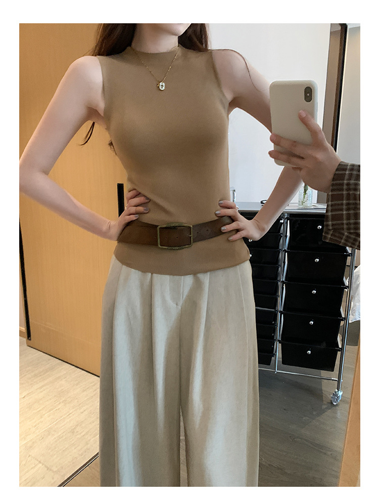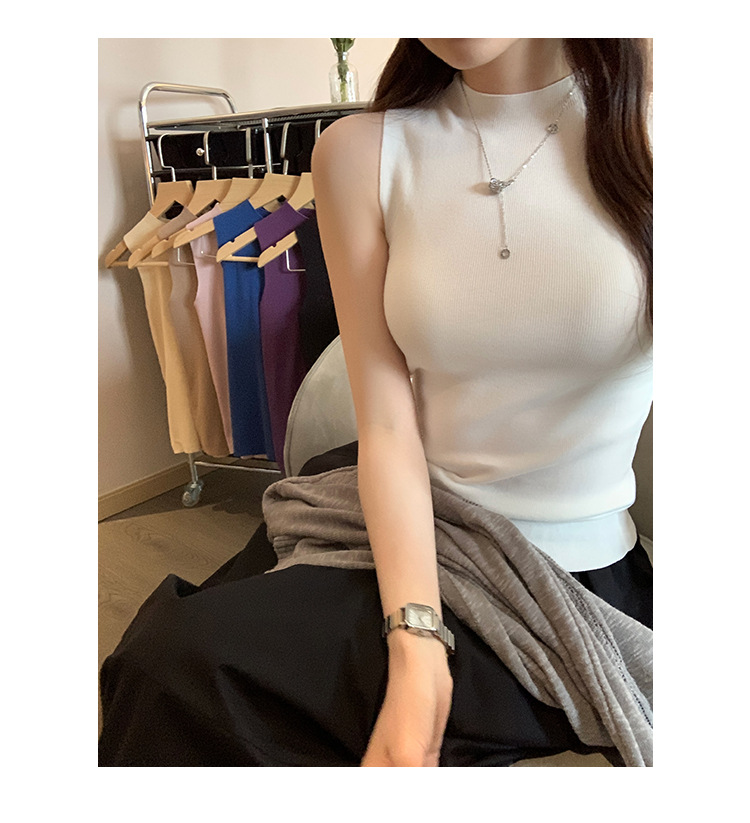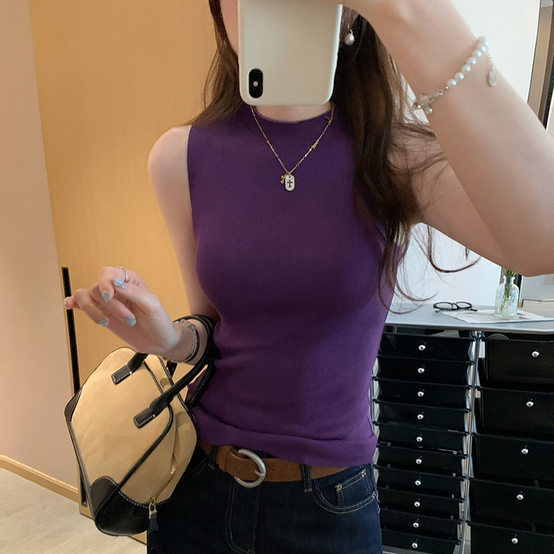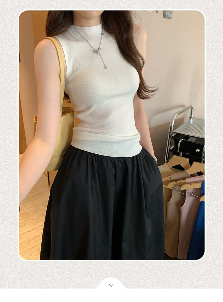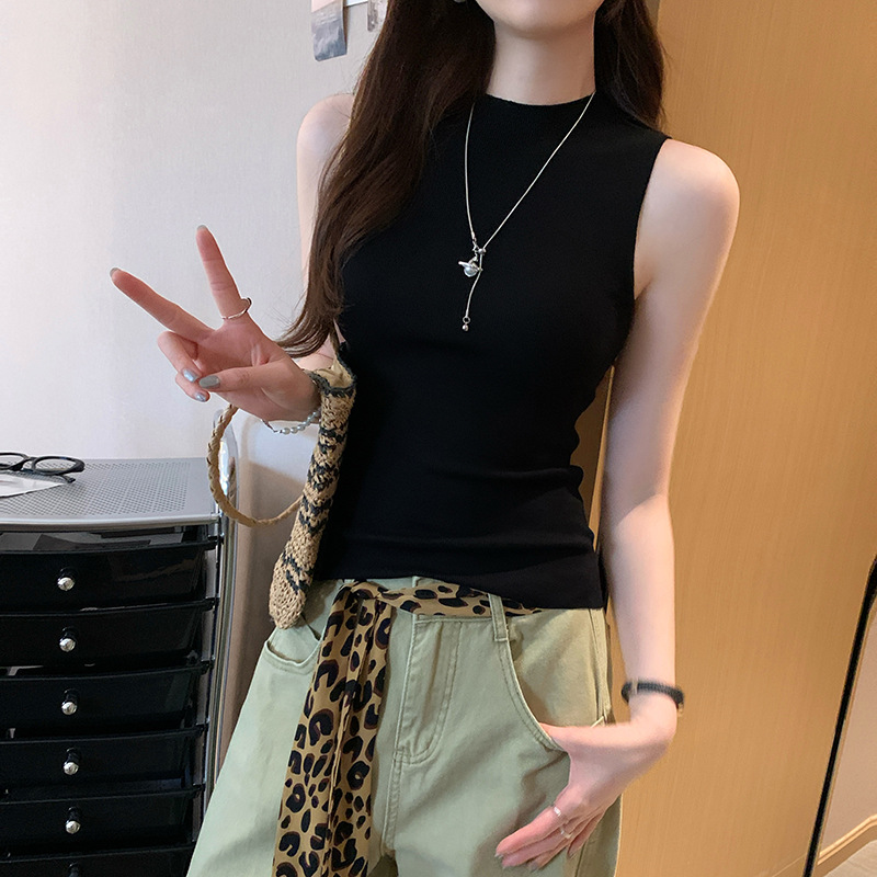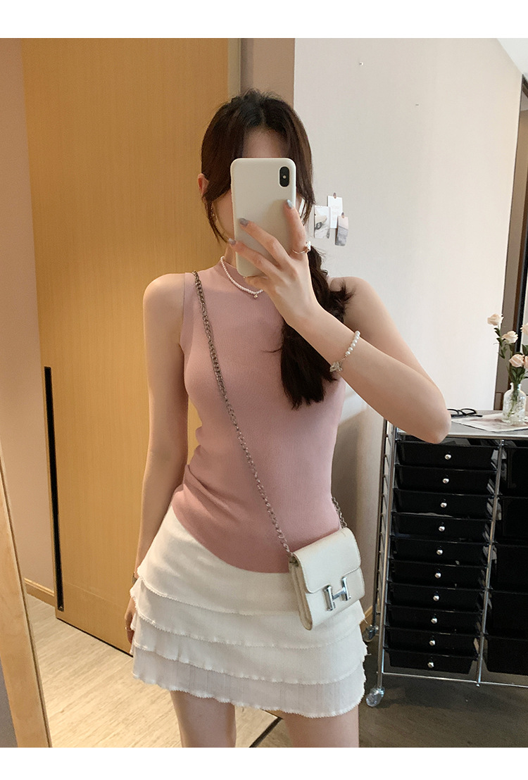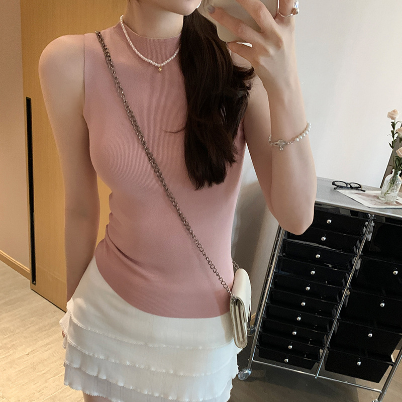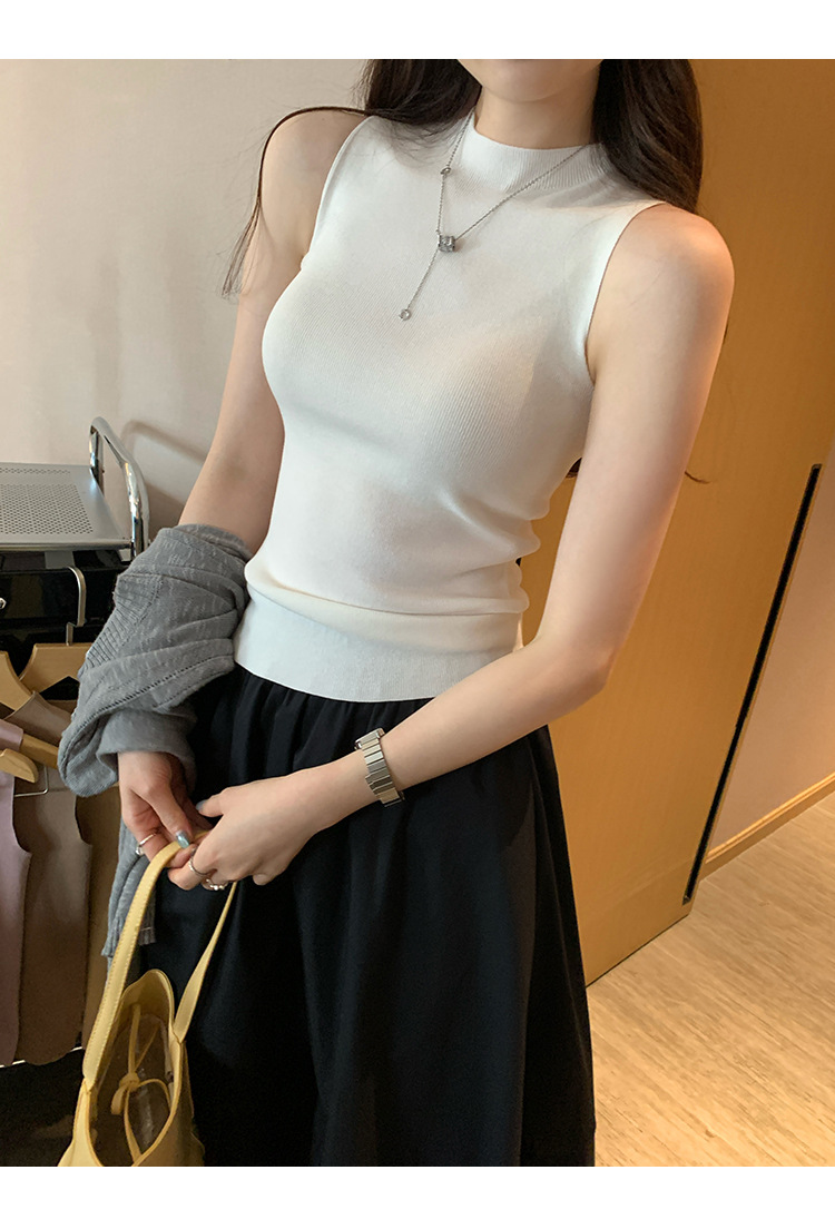 여성을위한 독특한 하이 엔드 화이트 하프 터틀넥 민소매 스웨터 2025 여름 새로운 아름다운 바닥 조끼 탑