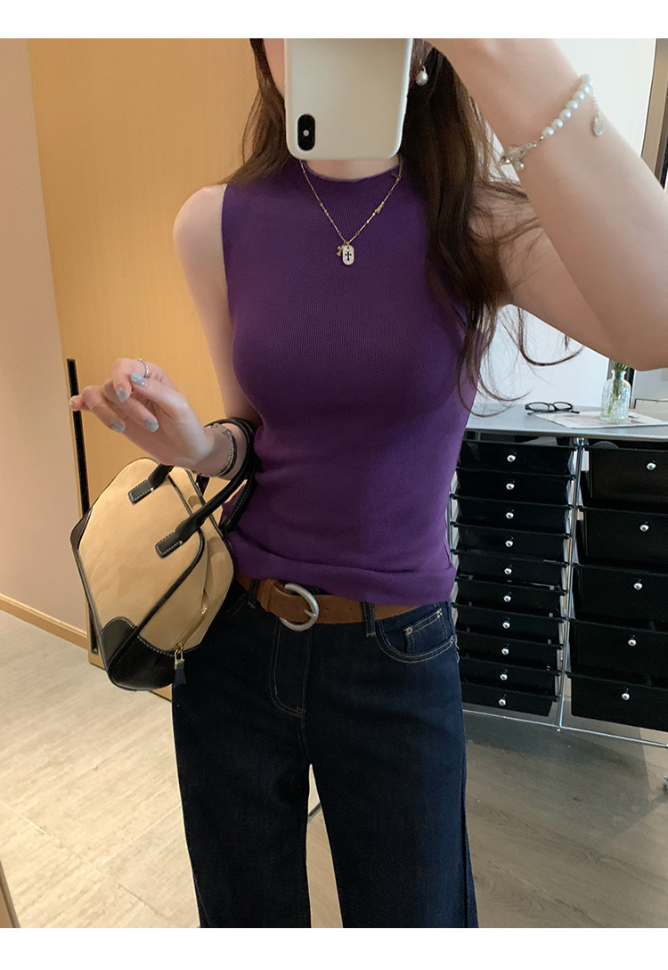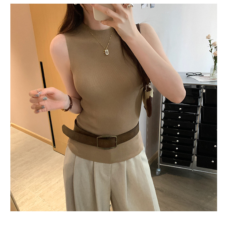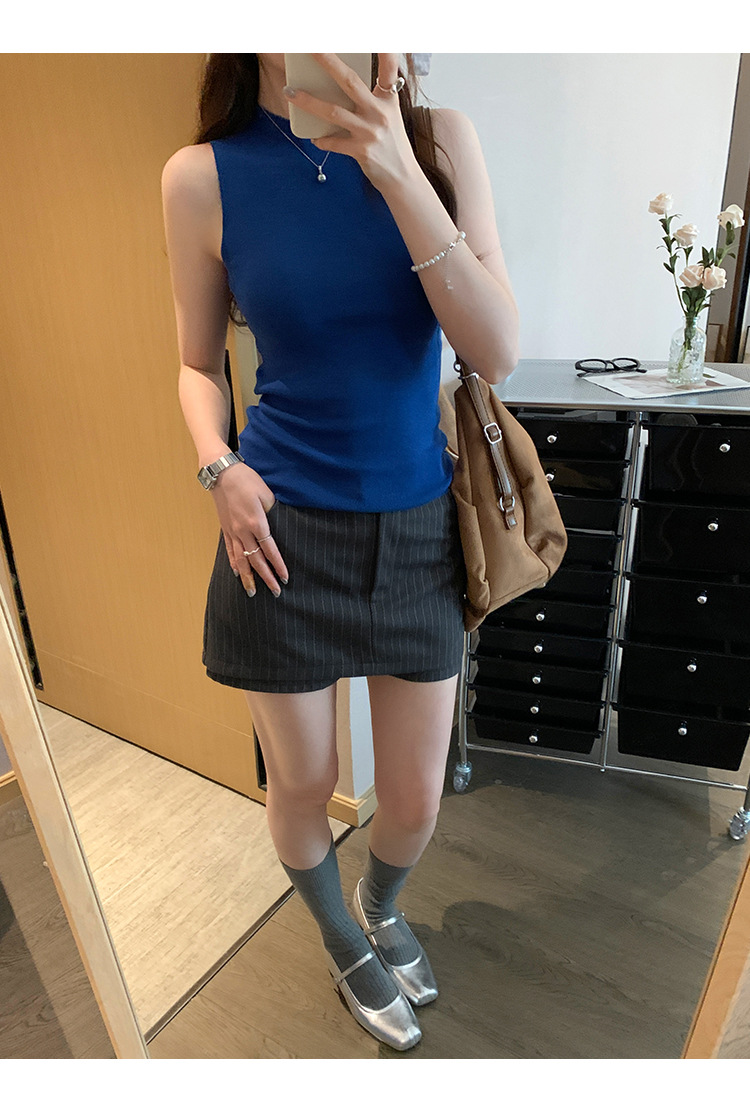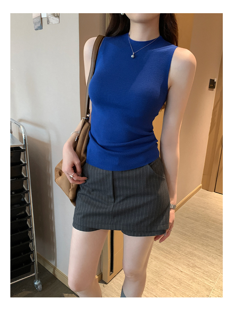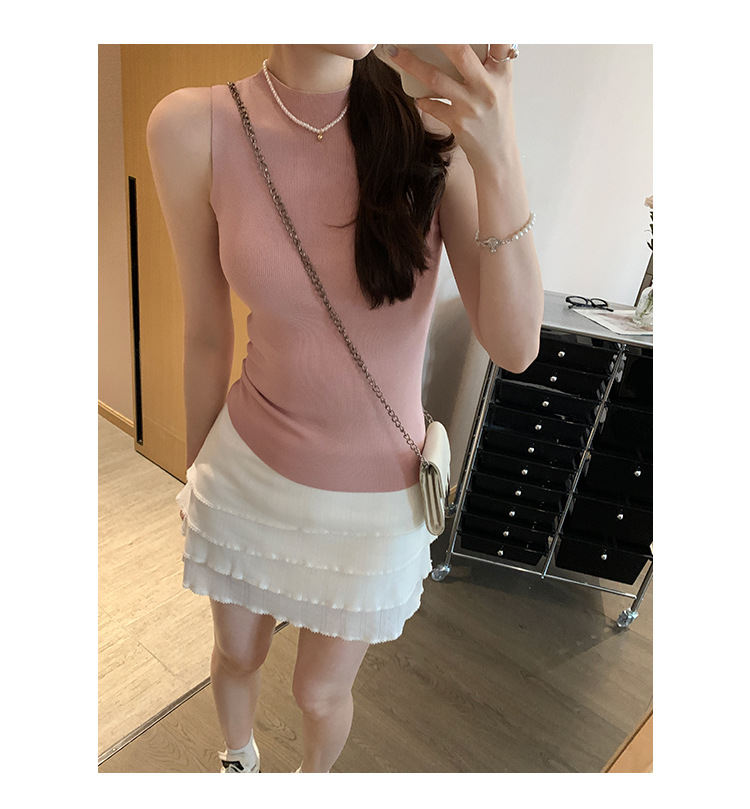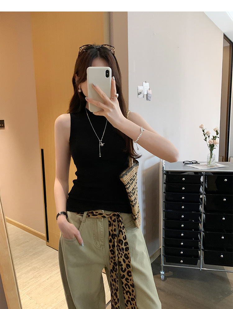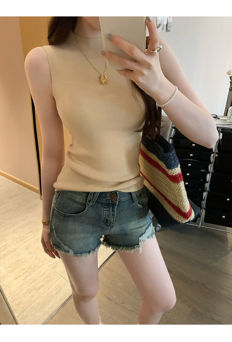 여성을위한 독특한 하이 엔드 화이트 하프 터틀넥 민소매 스웨터 2025 여름 새로운 아름다운 바닥 조끼 탑