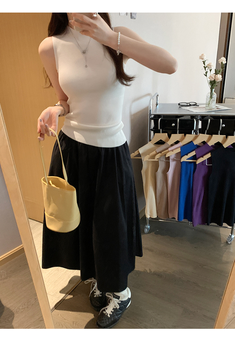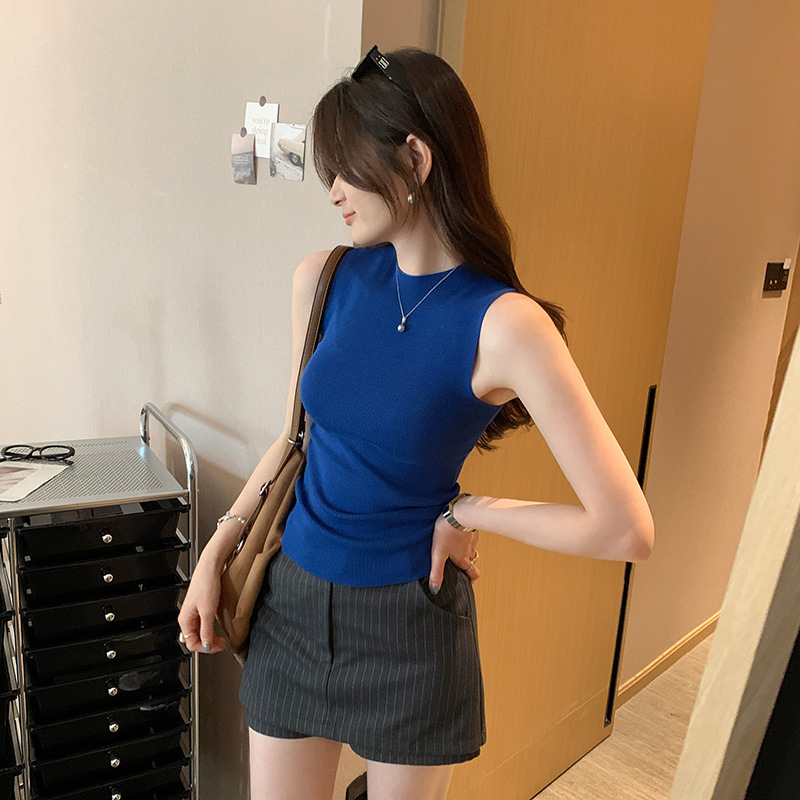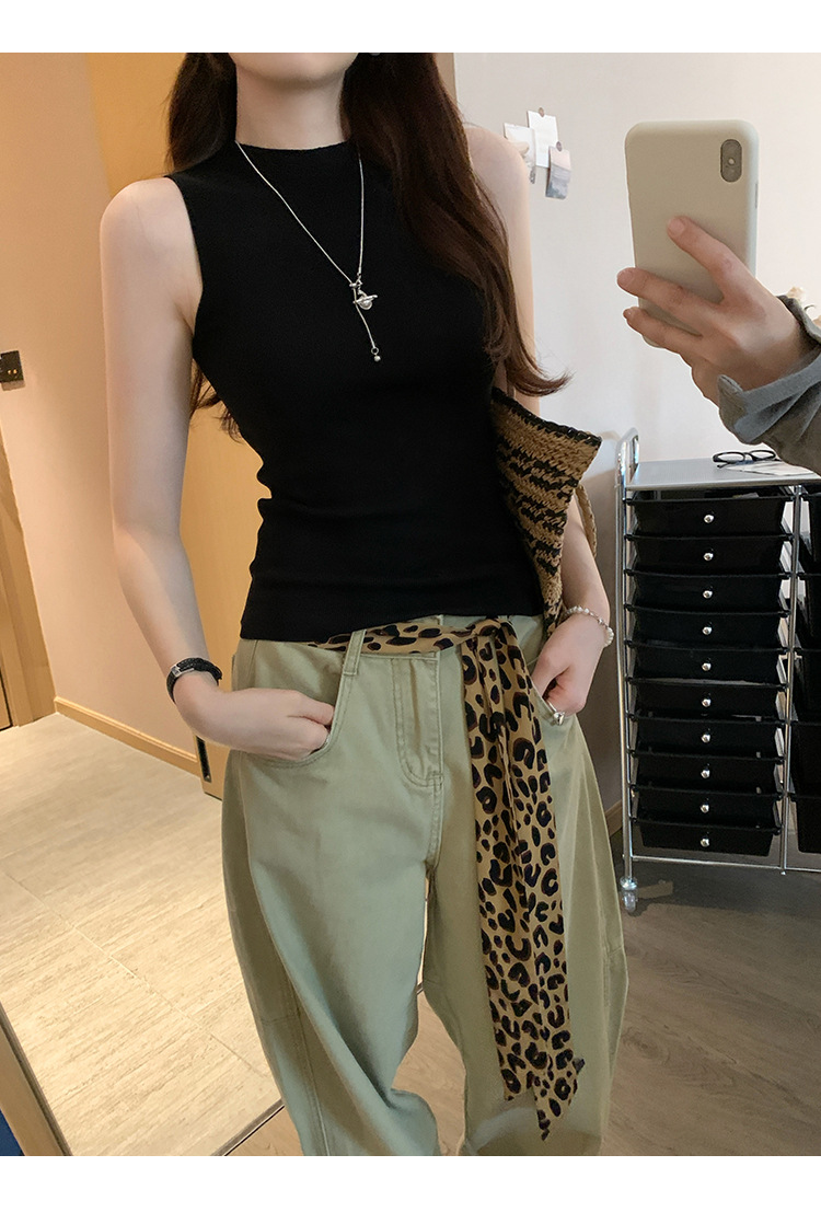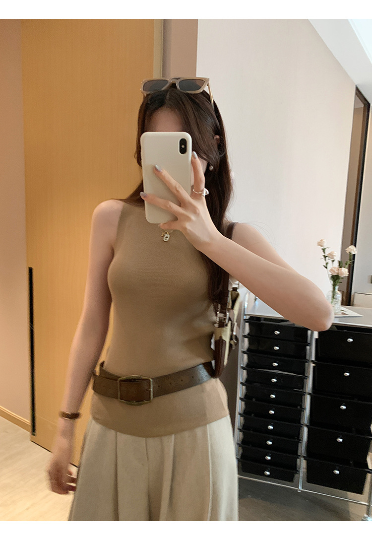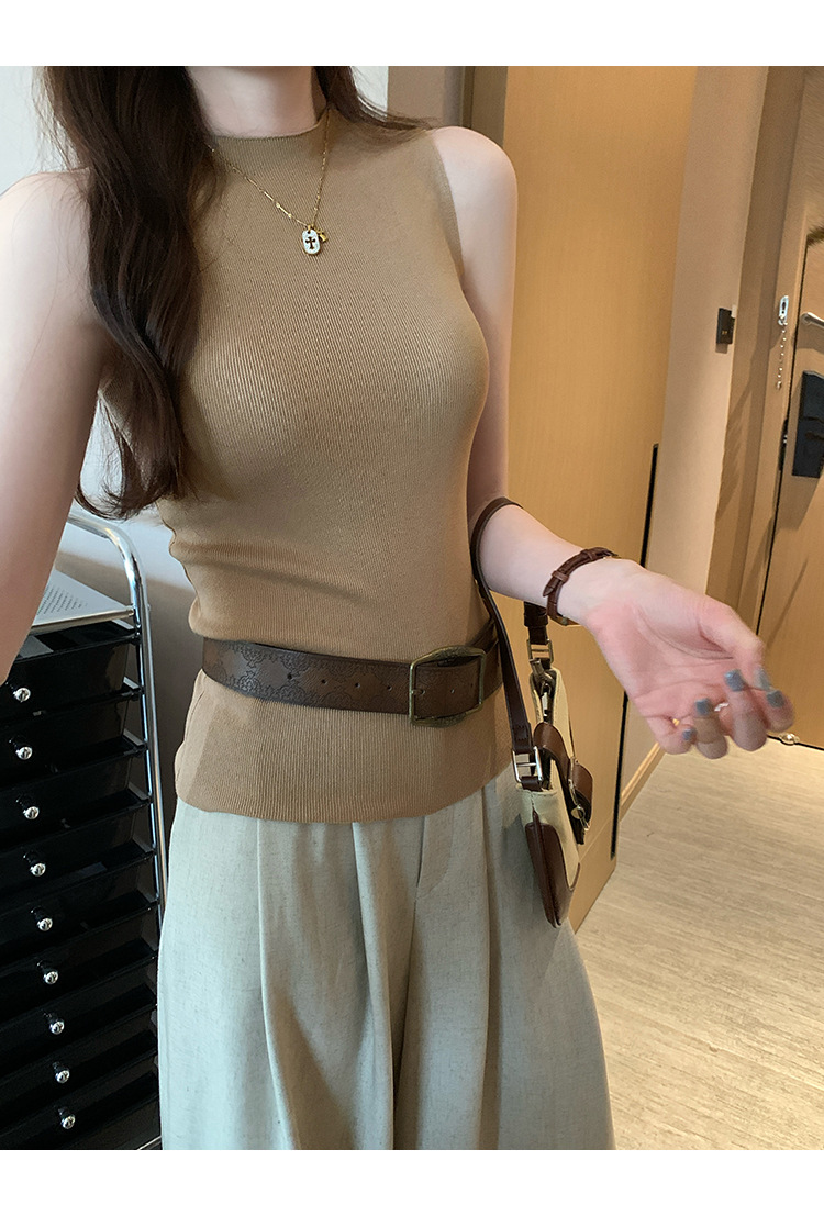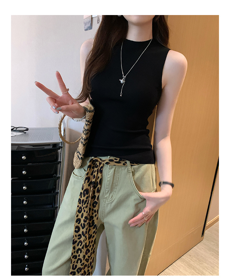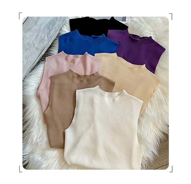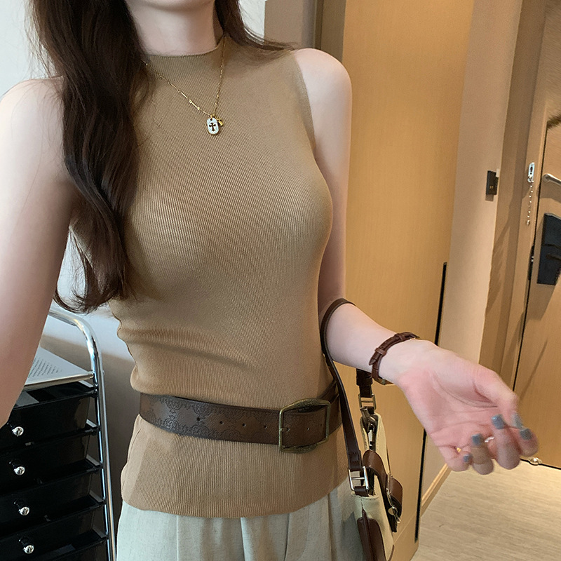여성을위한 독특한 하이 엔드 화이트 하프 터틀넥 민소매 스웨터 2025 여름 새로운 아름다운 바닥 조끼 탑