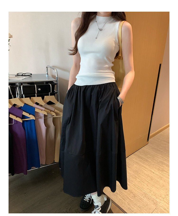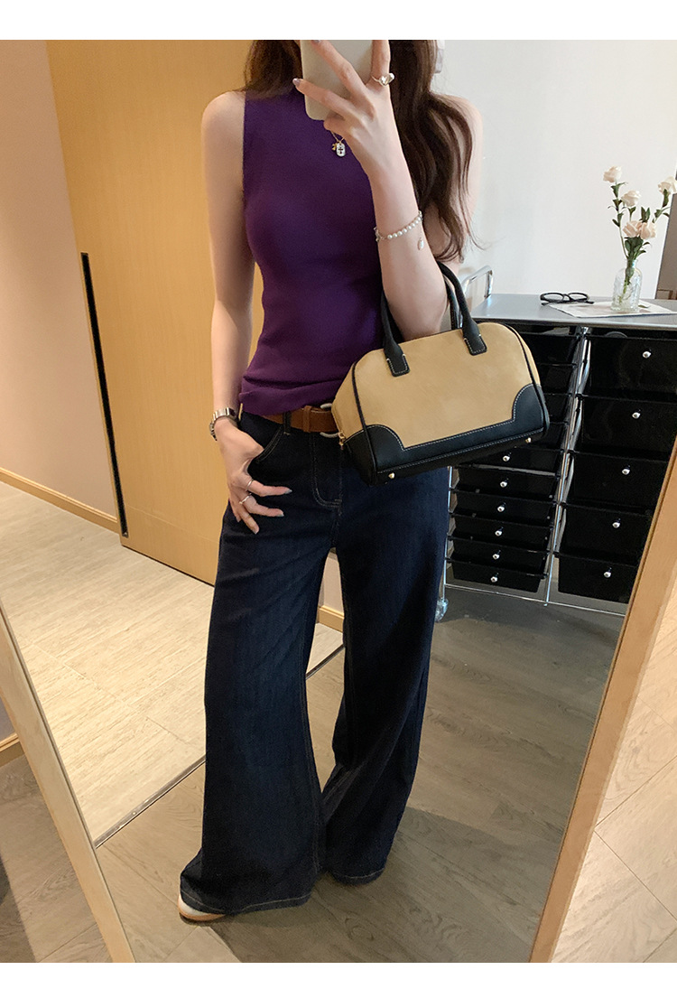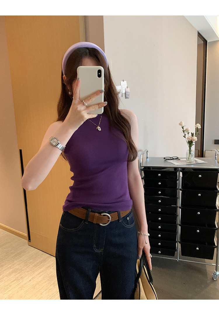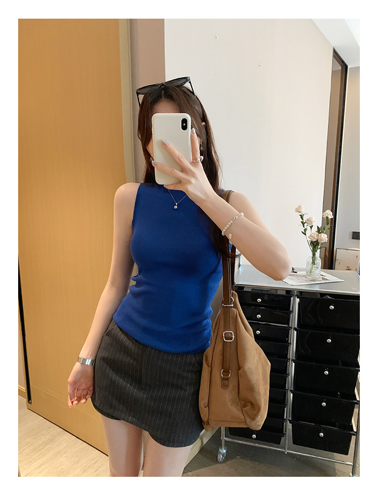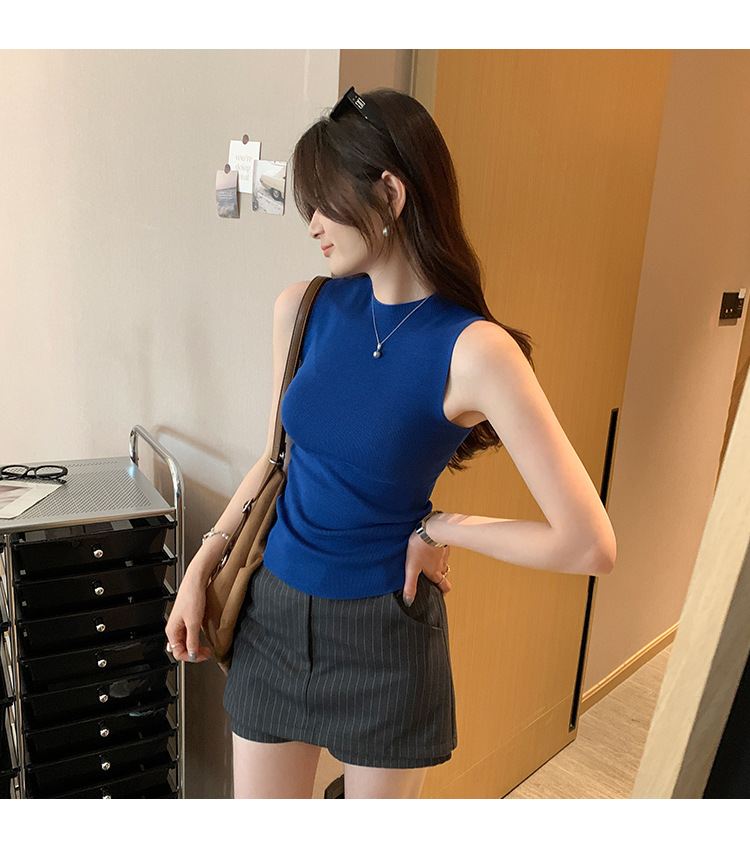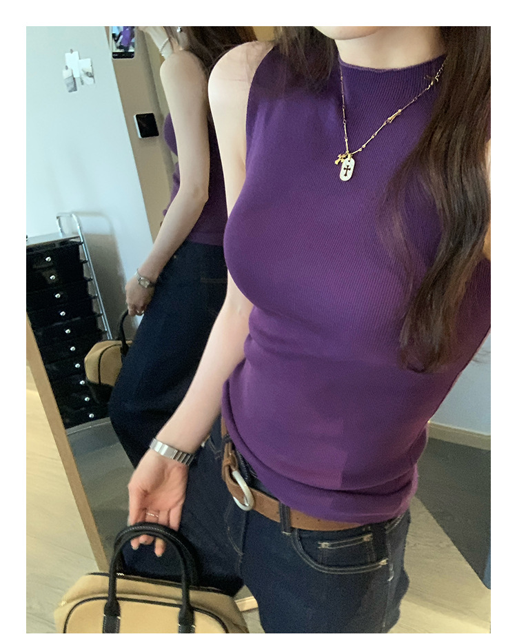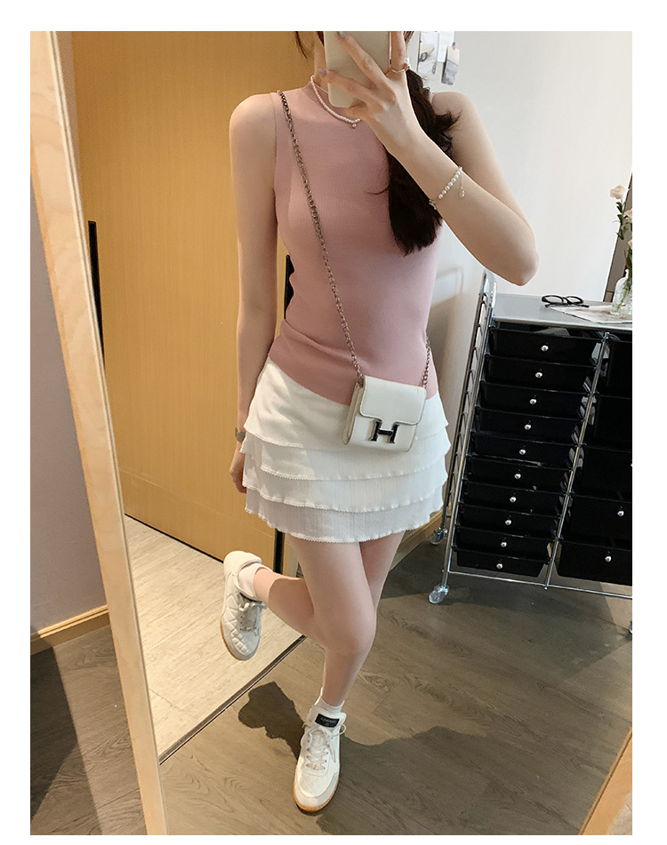 여성을위한 독특한 하이 엔드 화이트 하프 터틀넥 민소매 스웨터 2025 여름 새로운 아름다운 바닥 조끼 탑