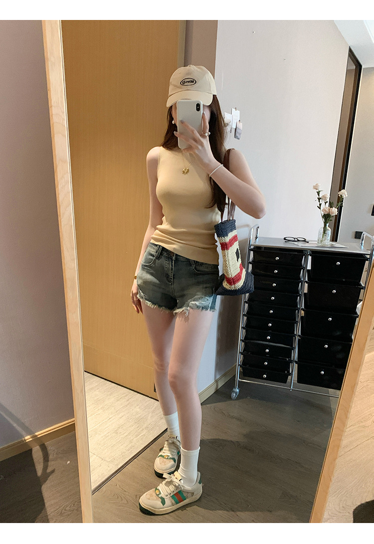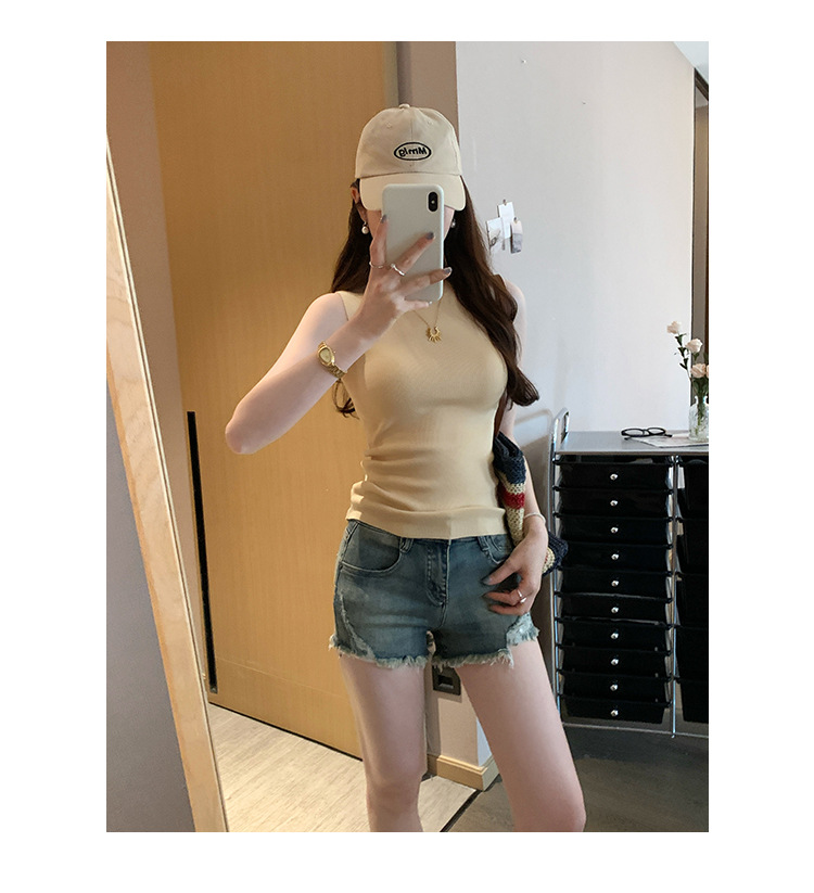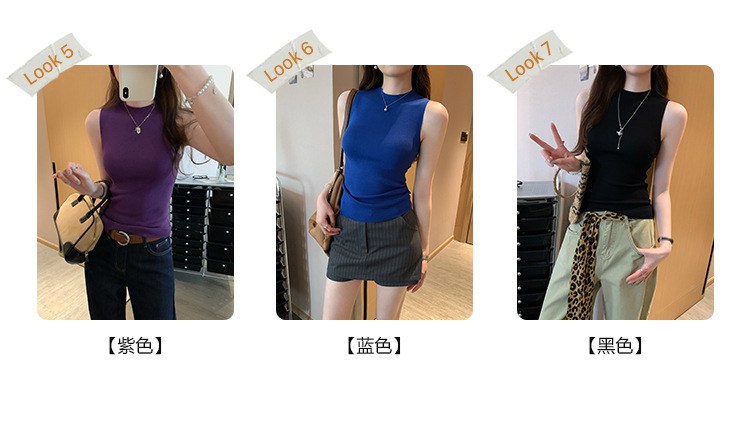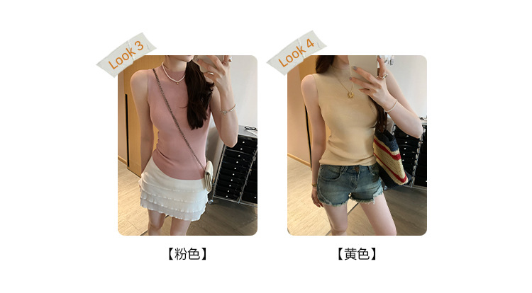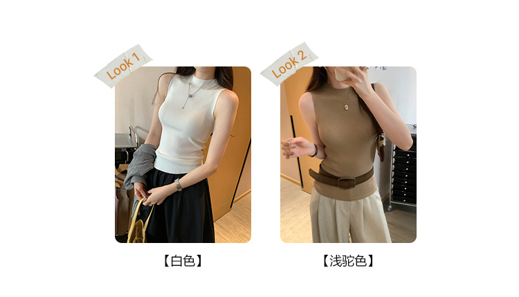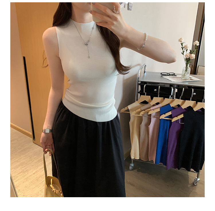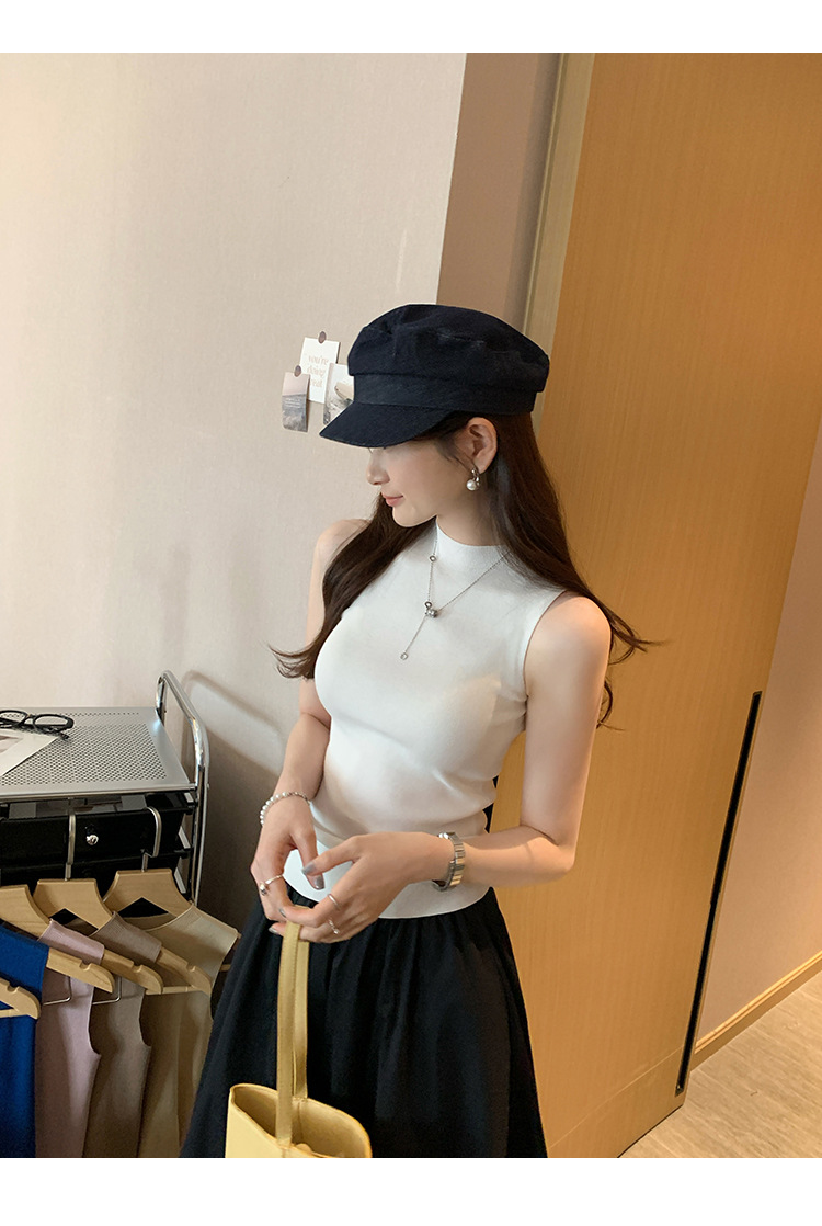 여성을위한 독특한 하이 엔드 화이트 하프 터틀넥 민소매 스웨터 2025 여름 새로운 아름다운 바닥 조끼 탑스토어 가기