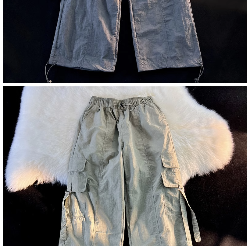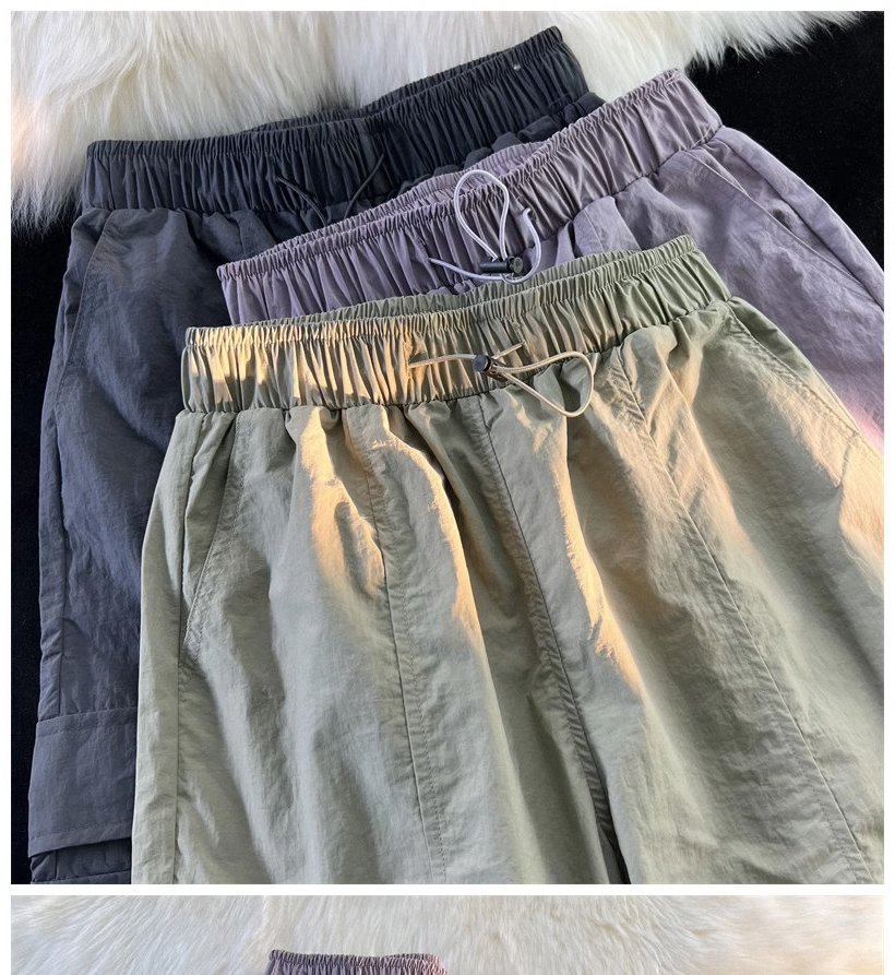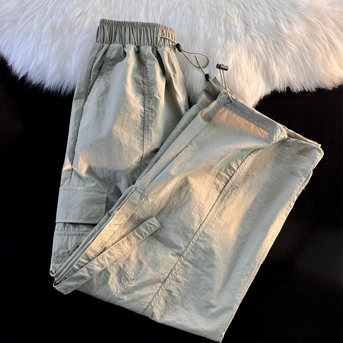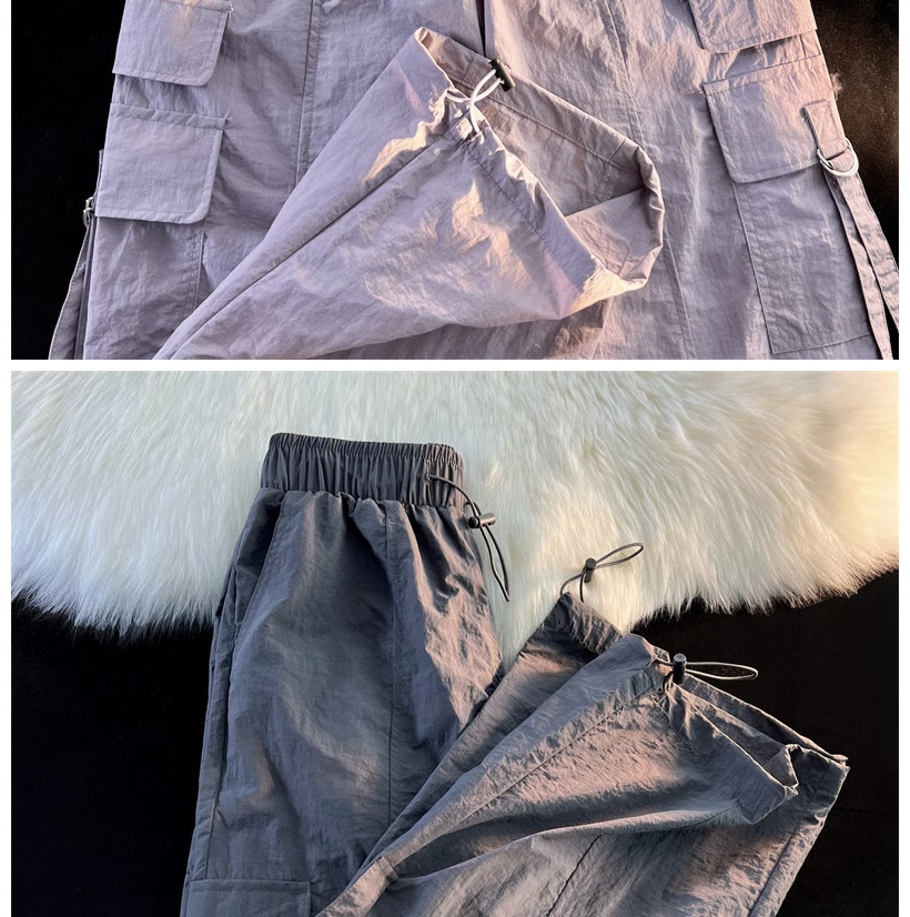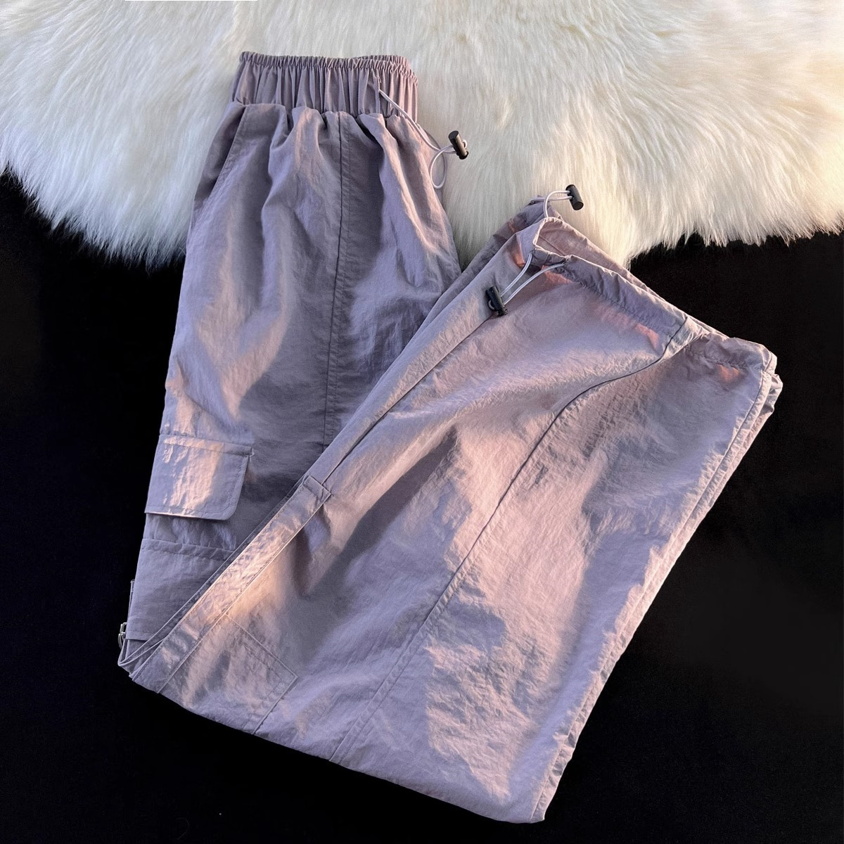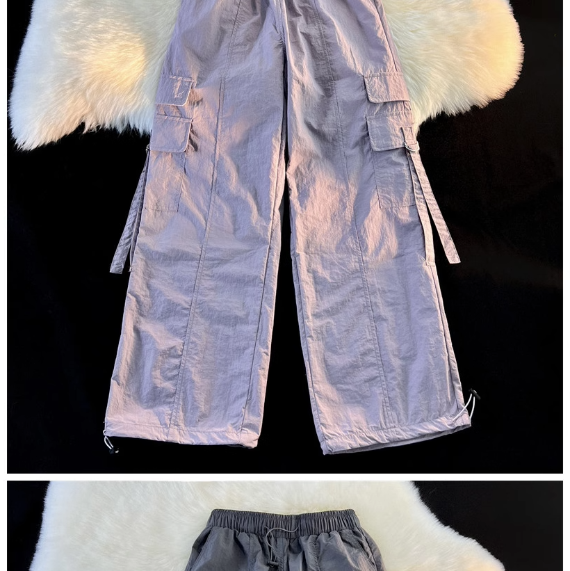 ~ 라벨 컷팅으로 아메리칸 드로스트링 오버올 여성 여름 루즈 레깅스 충전 팬츠 속건성 와이드 팬츠