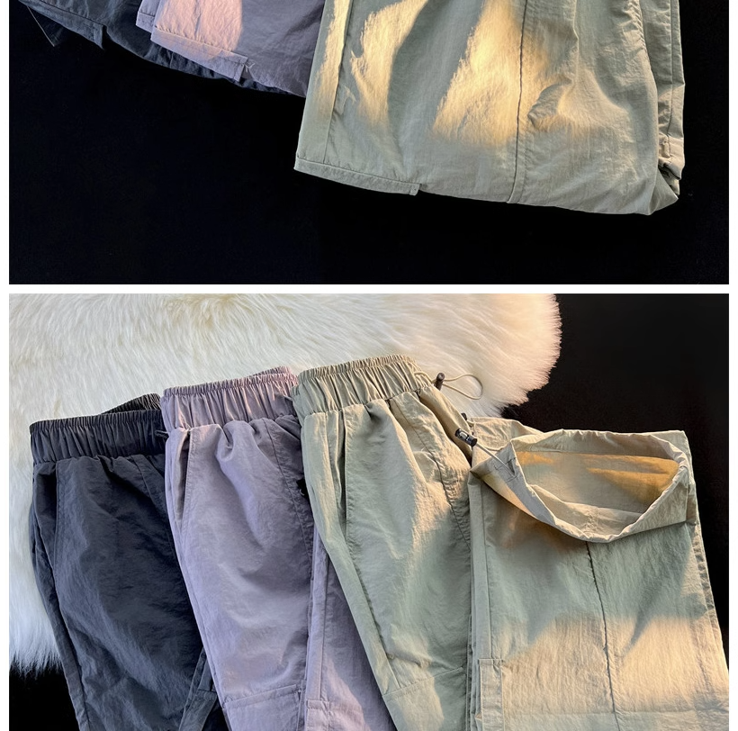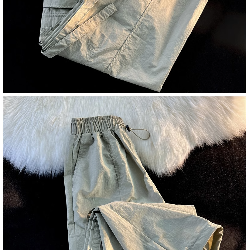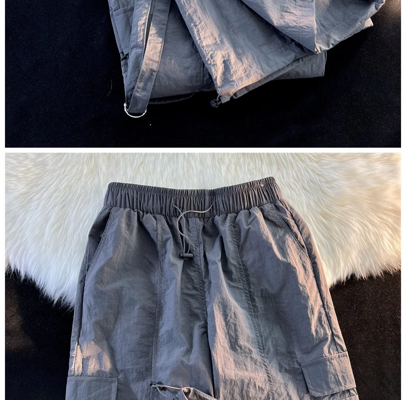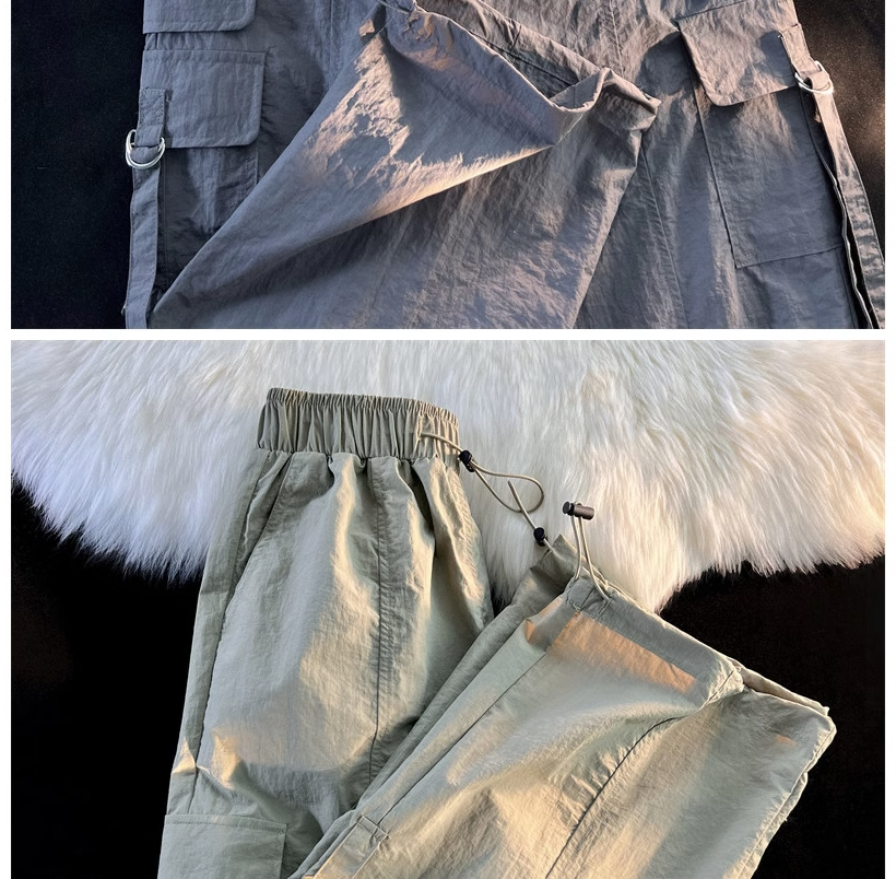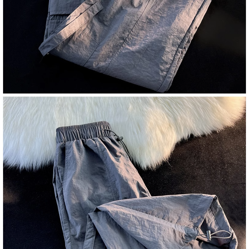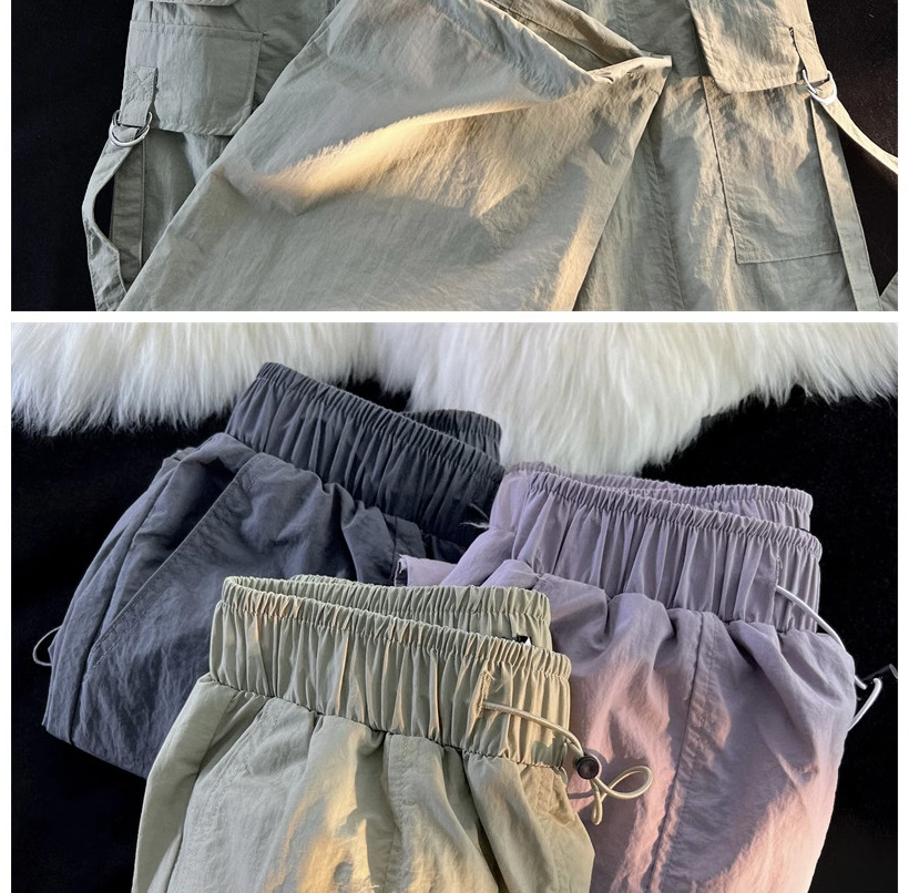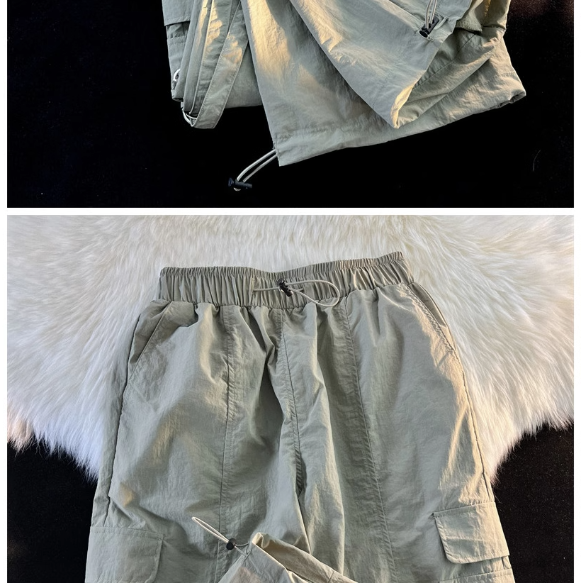 ~ 라벨 컷팅으로 아메리칸 드로스트링 오버올 여성 여름 루즈 레깅스 충전 팬츠 속건성 와이드 팬츠