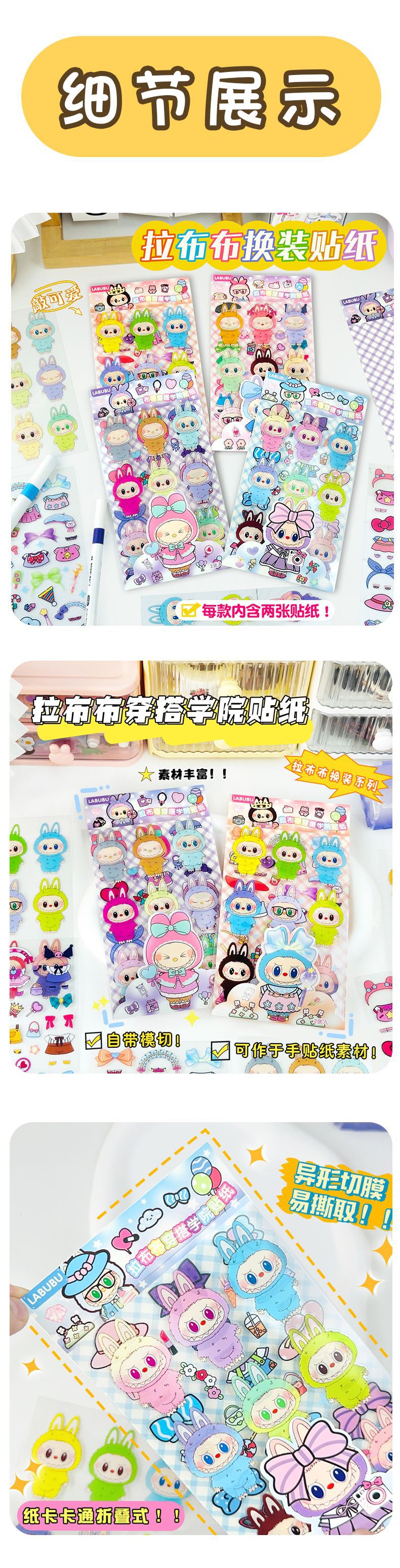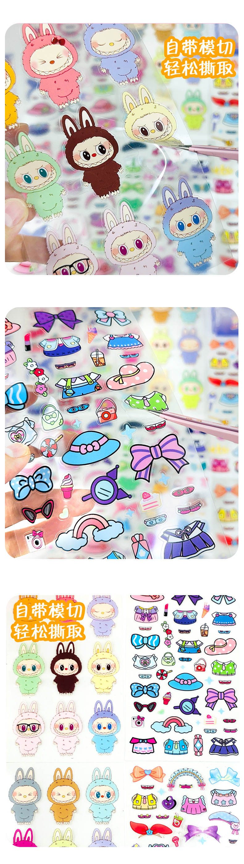 만화 귀여운 핸드북 스티커 labubu 수제 드레스 업 스티커 어린이 물 컵 스티커 장식스토어 가기