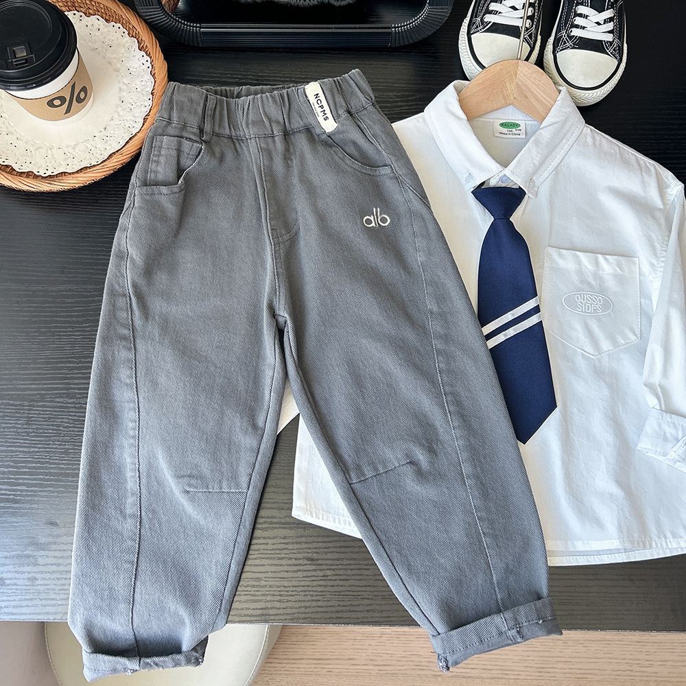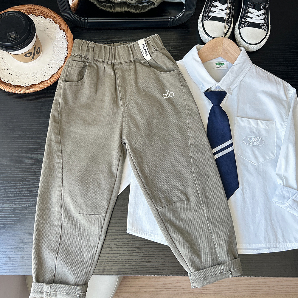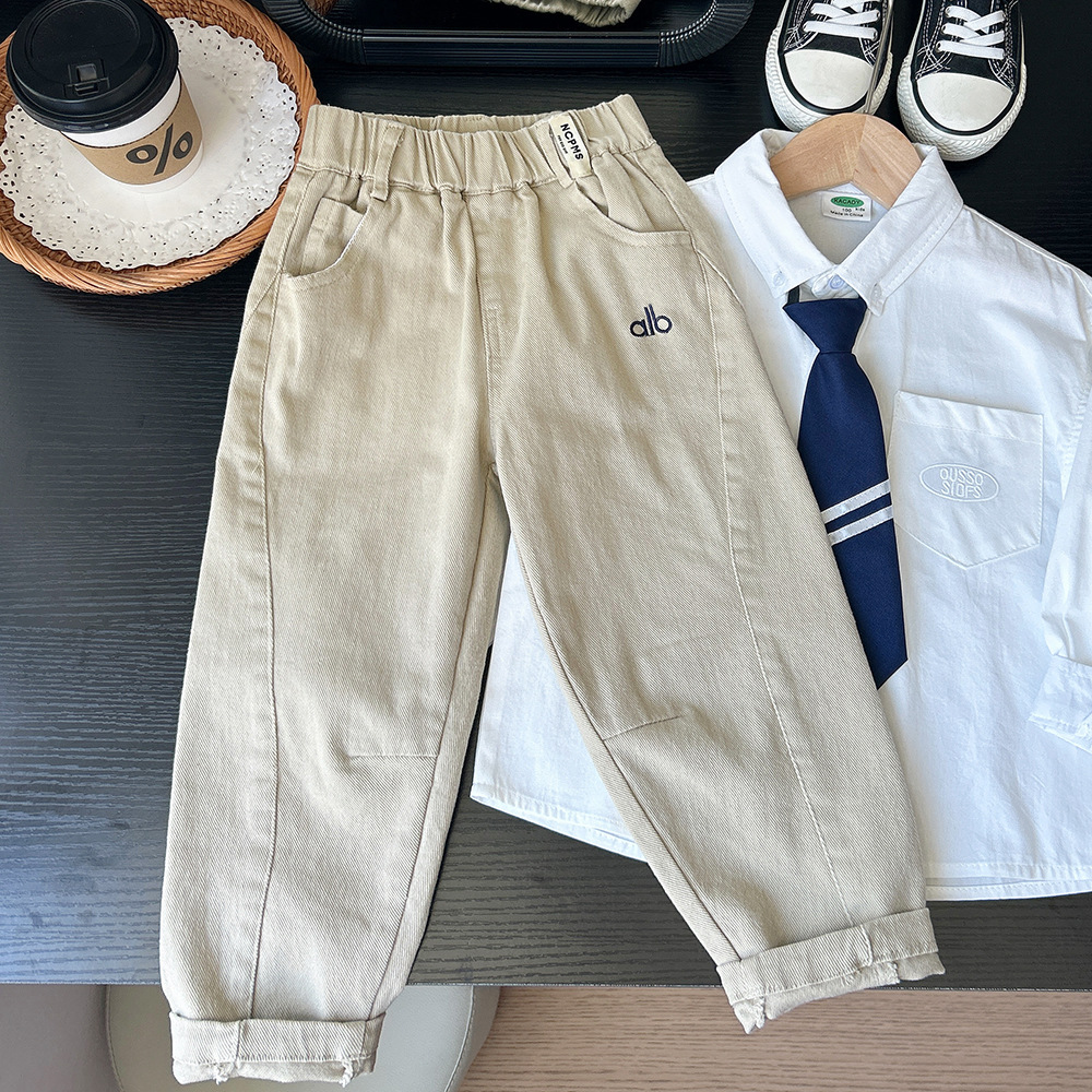 2025 새로운 가을 아동 의류 소년 어린이 면화 탄성 캐주얼 바지 남성 스트레이트 바지 도매 Dropshipping