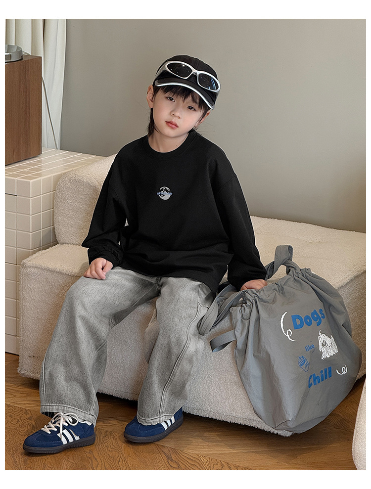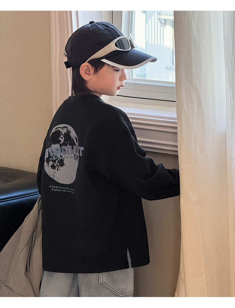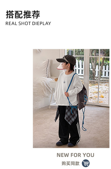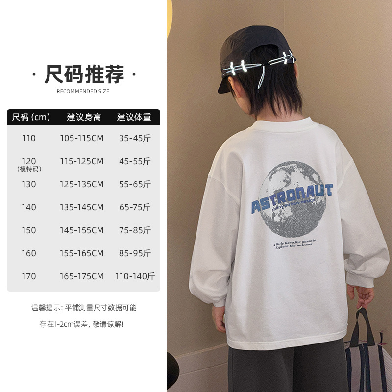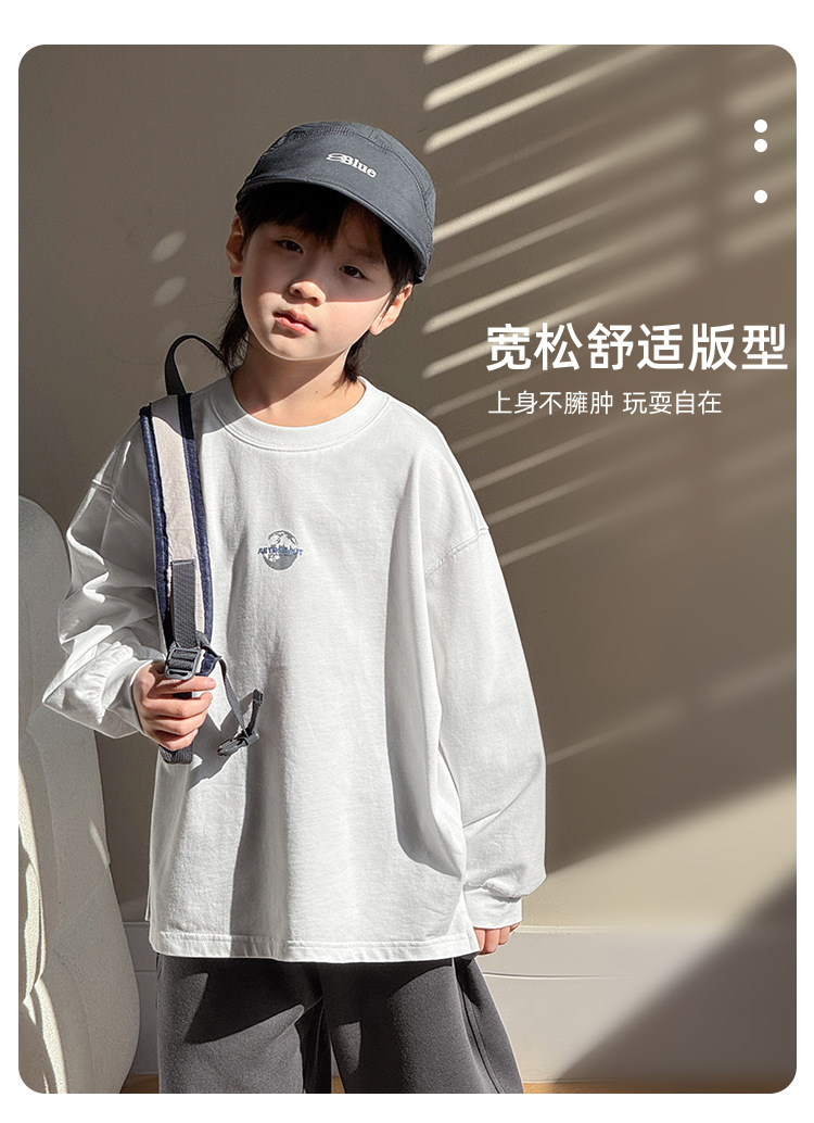Zhenpinxuan 아동 의류 소년 긴팔 2025 가을 새로운 어린이 캐주얼 루즈 탑 중대형 어린이 봄, 가을 티셔츠스토어 가기