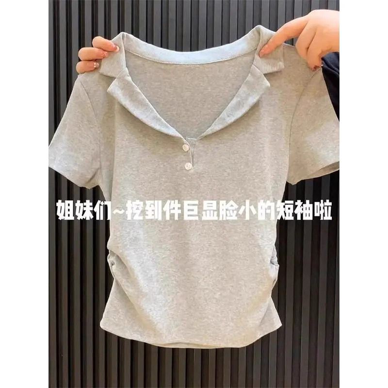 여름 여성용 폴로 칼라 반팔 티셔츠, 슬림한 어깨, 한국식 허리 셔츠, 짧은 스타일의 탑, 허리 슬리밍
