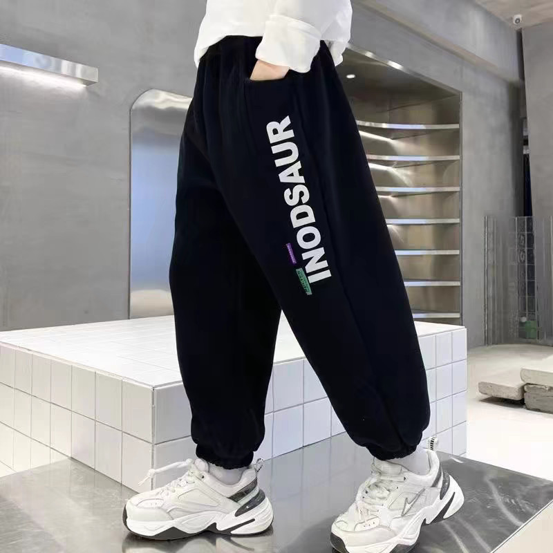 소년 바지 봄, 가을 2025 새로운 어린이 운동복 스포츠 바지 중대형 어린이 캐주얼 루즈 바지 프린트 얇은 스타일