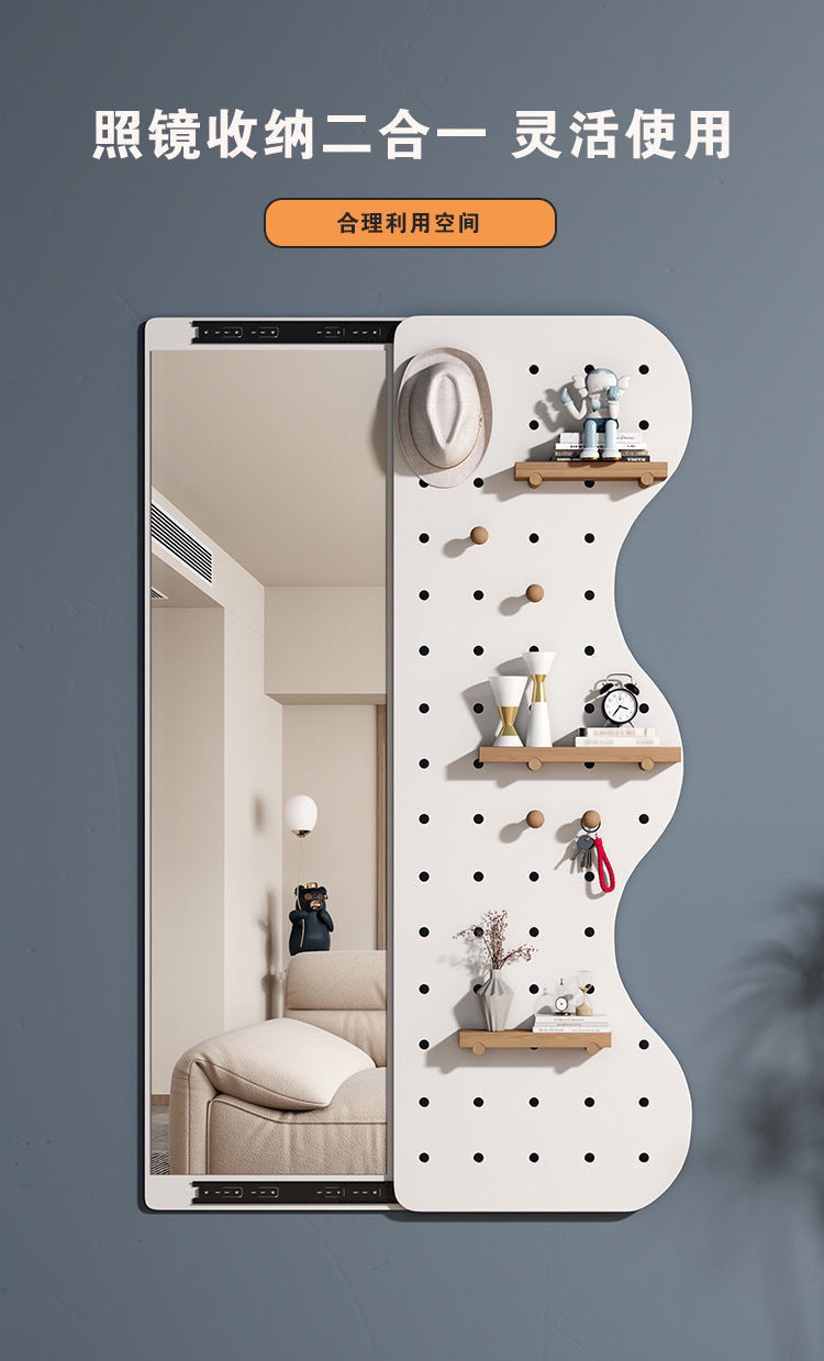 가정용 구멍 보드 거울 벽걸이 드레싱 거울 소녀 침실 메이크업 피팅 거울 ins 스타일 벽걸이 코트 랙 거울스토어 가기