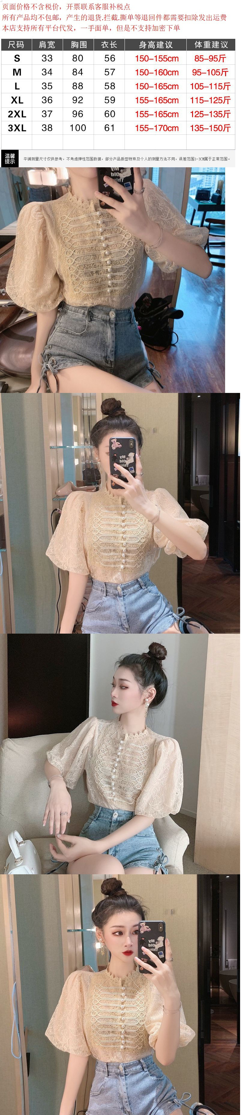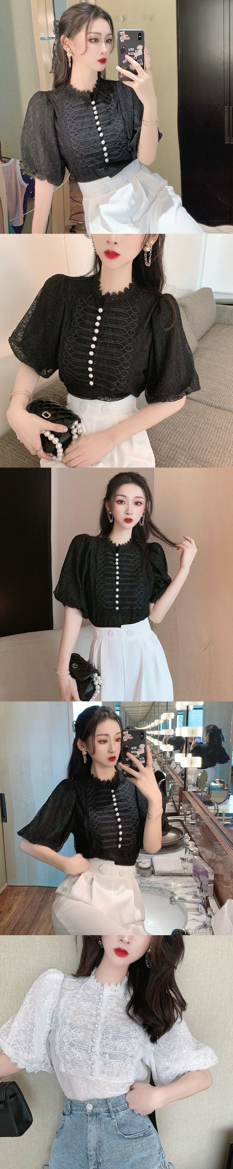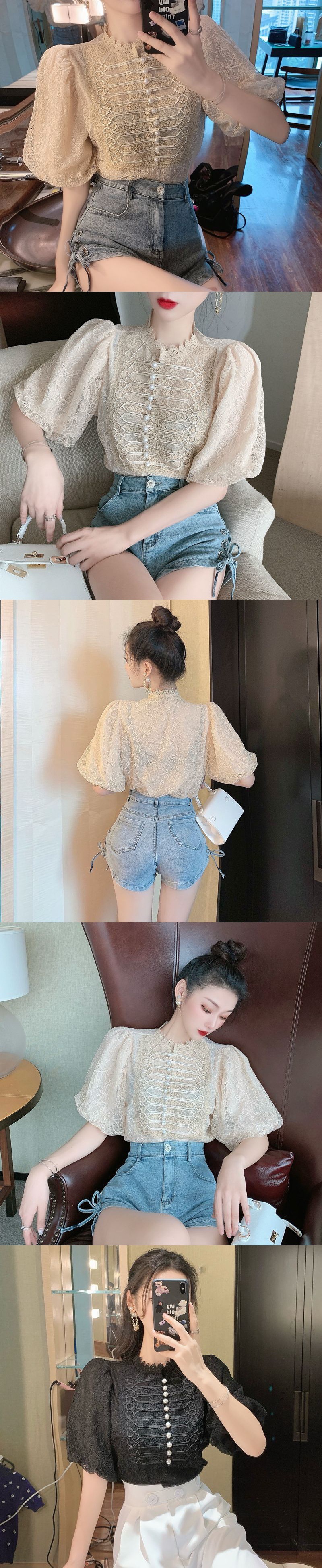 여성을위한 프랑스 스타일 퍼프 슬리브 레이스 탑 2025 여름 새로운 디자인 틈새 구슬 쉬폰 셔츠스토어 가기