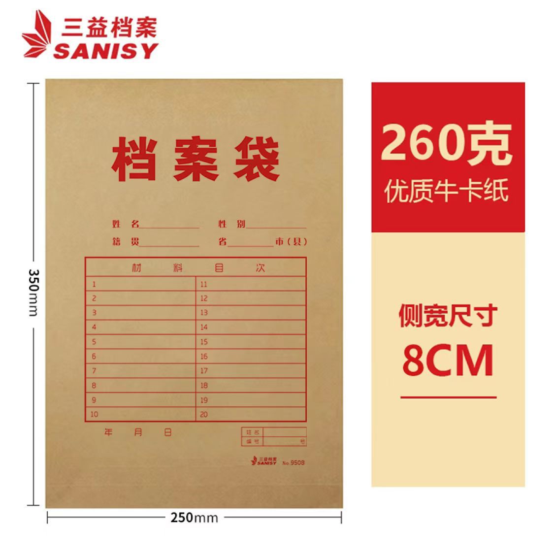 Sanyi 파일 재고 있음 도매 A4 두꺼운 대형 크래프트 종이 파일 가방 파일 보관 가방 과외 가방 시험지 가방
