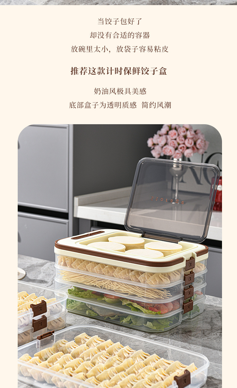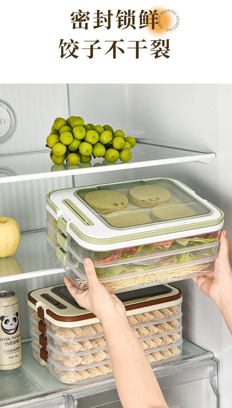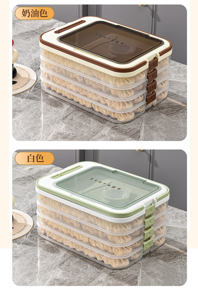 뚜껑이 있는 휴대용 만두 상자, 대형 만두, 투명하고 두꺼운 만두 상자, 뚜껑이 있는 다층 급속 냉동 보존 상자