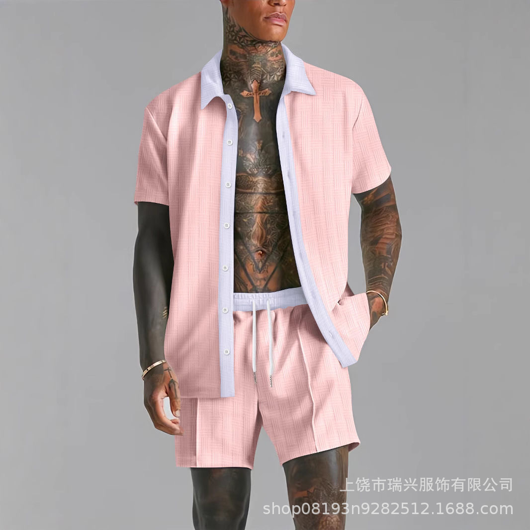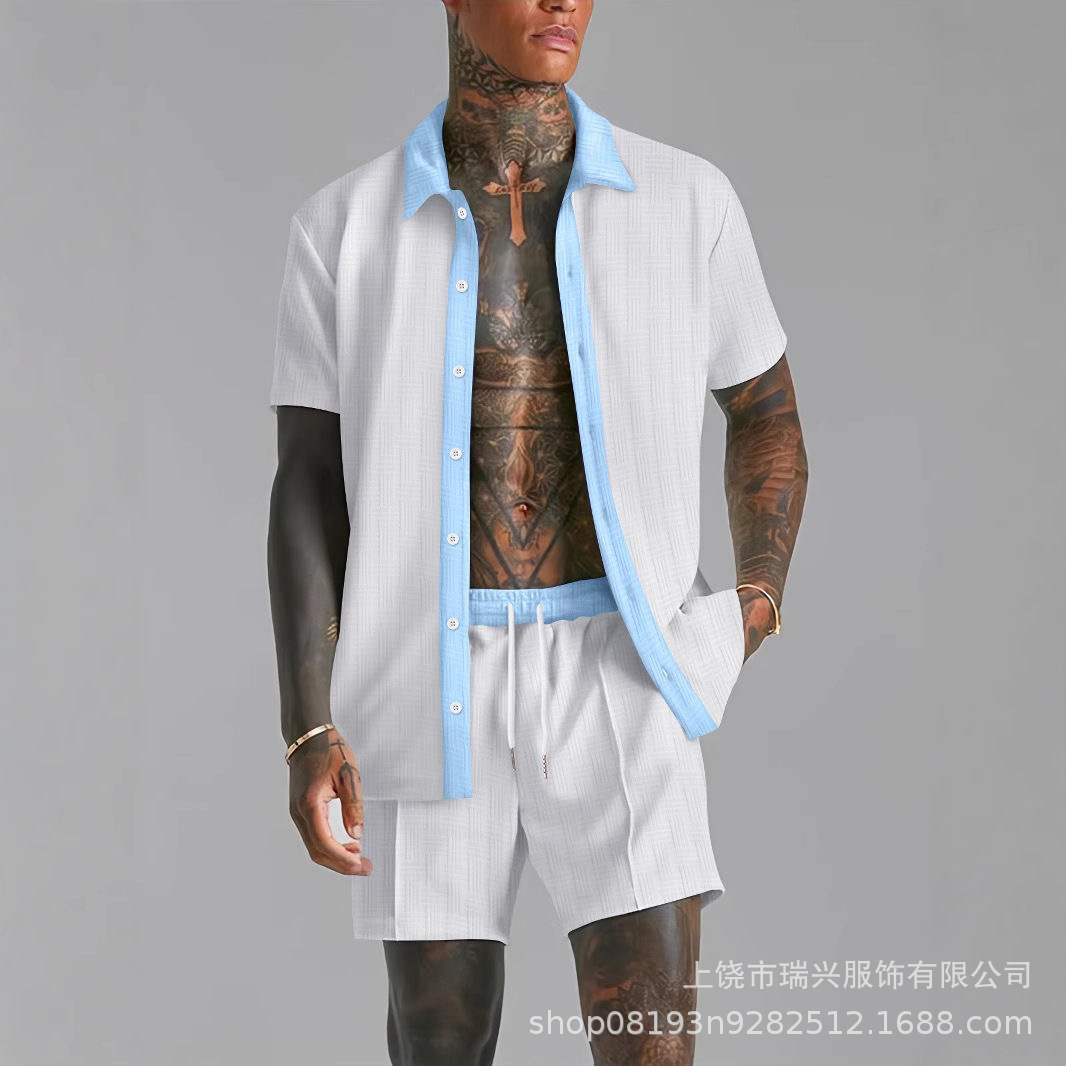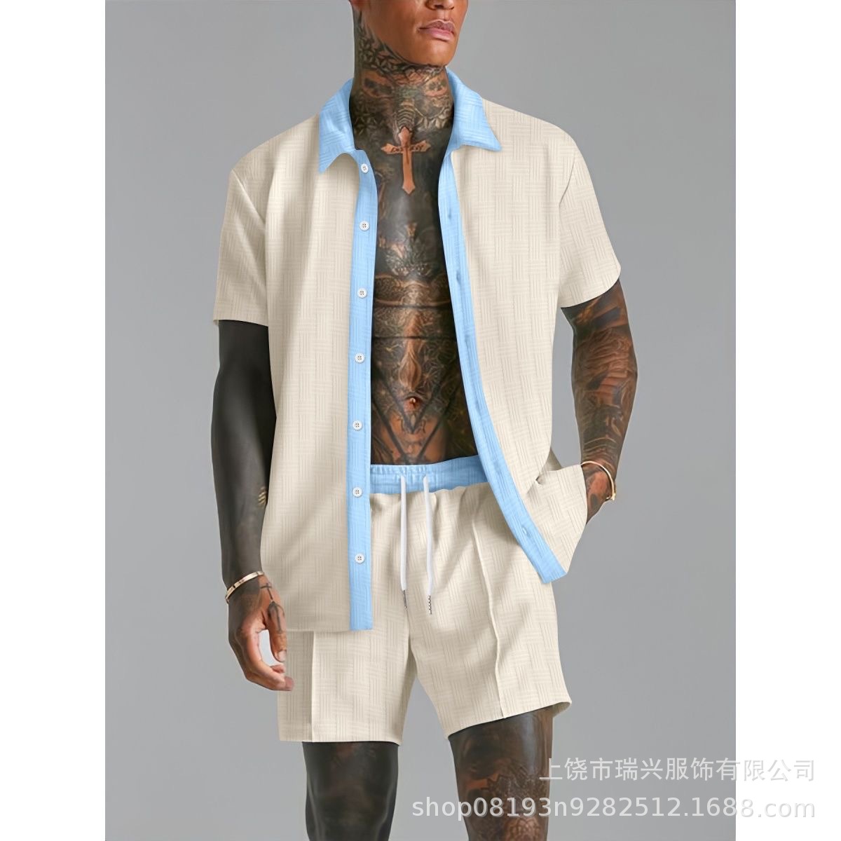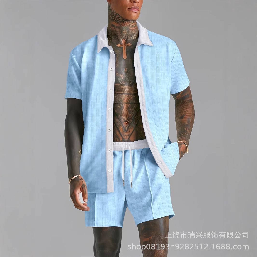 국경 간 디지털 인쇄 Amazon 독립 스테이션 여름 남성 패션 캐주얼 휴가 솔리드 컬러 반팔 셔츠