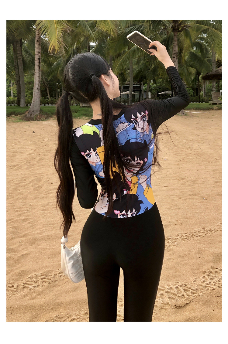 한국 서핑 수영복 여성용 원피스 긴팔 바지 스노클링 슈트 슬리밍 슬리밍 자외선 차단 래프팅 다이빙 해파리 슈트 여성용