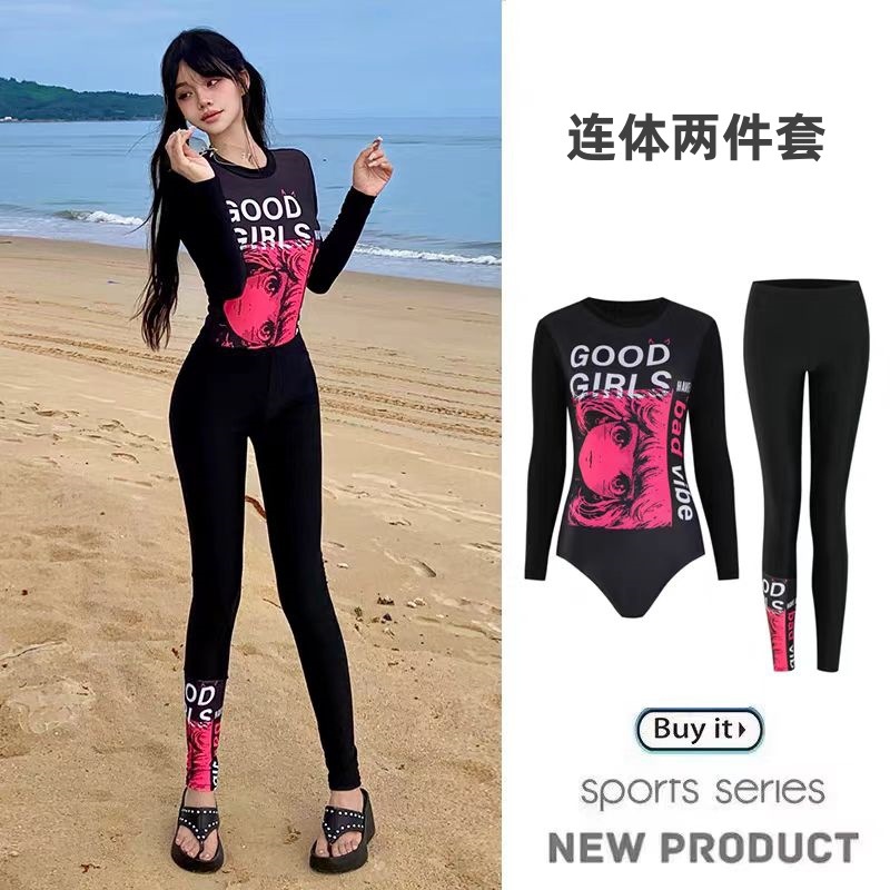 한국 서핑 수영복 여성용 원피스 긴팔 바지 스노클링 슈트 슬리밍 슬리밍 자외선 차단 래프팅 다이빙 해파리 슈트 여성용스토어 가기