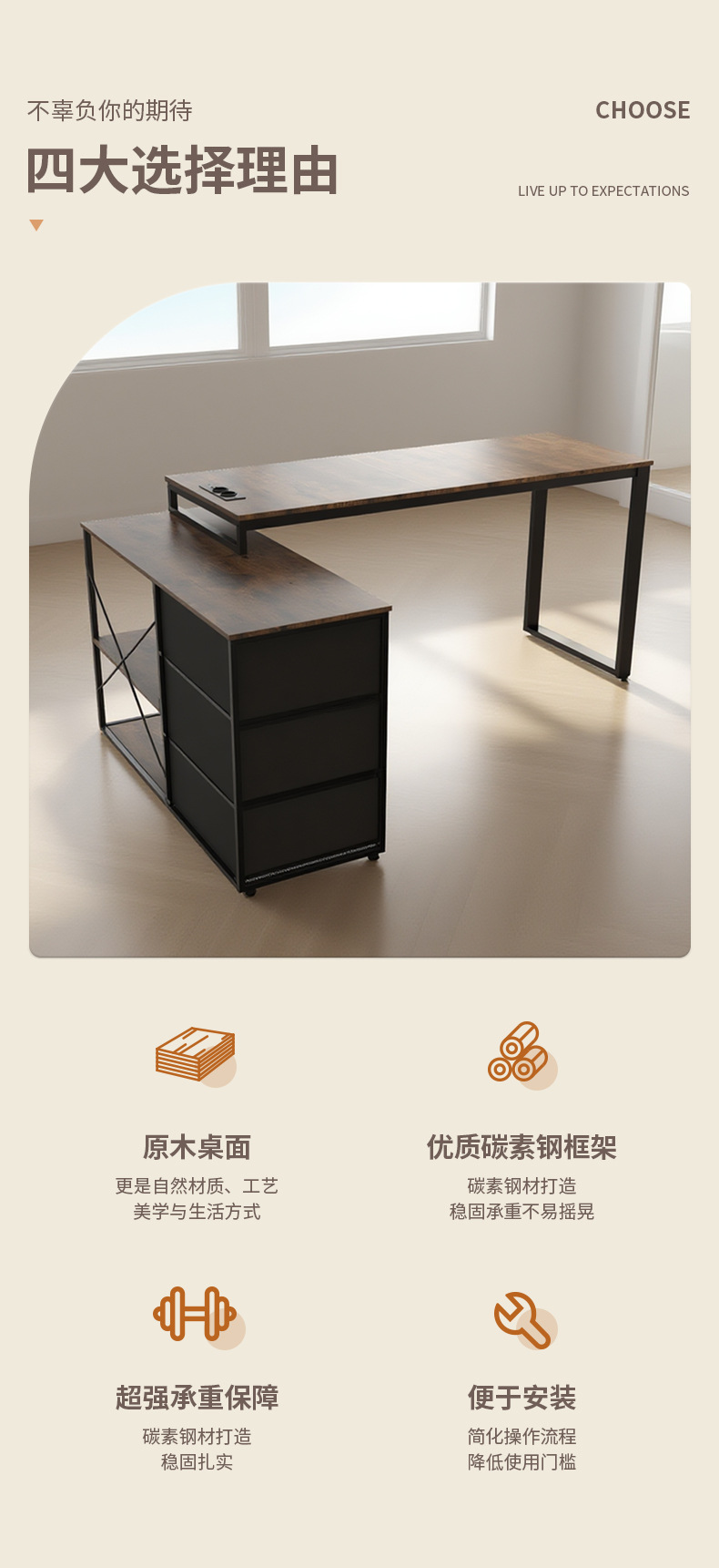도매 사용자 정의 사무실 엔터테인먼트 산업 스타일 단단한 나무 현대 미니멀리스트 컴퓨터 책상 사무실 간단한 작업대