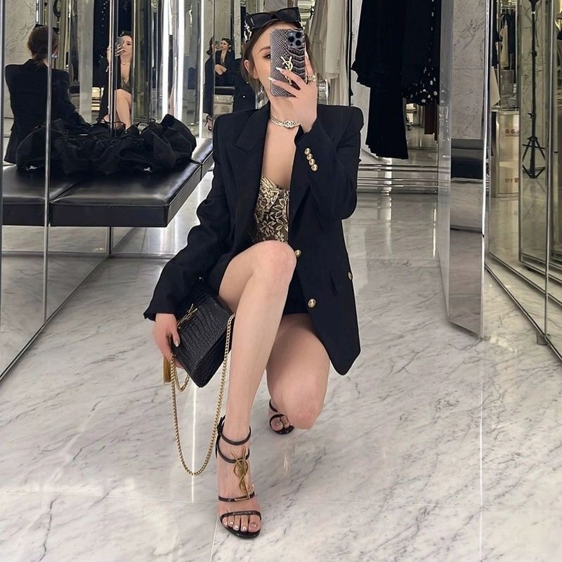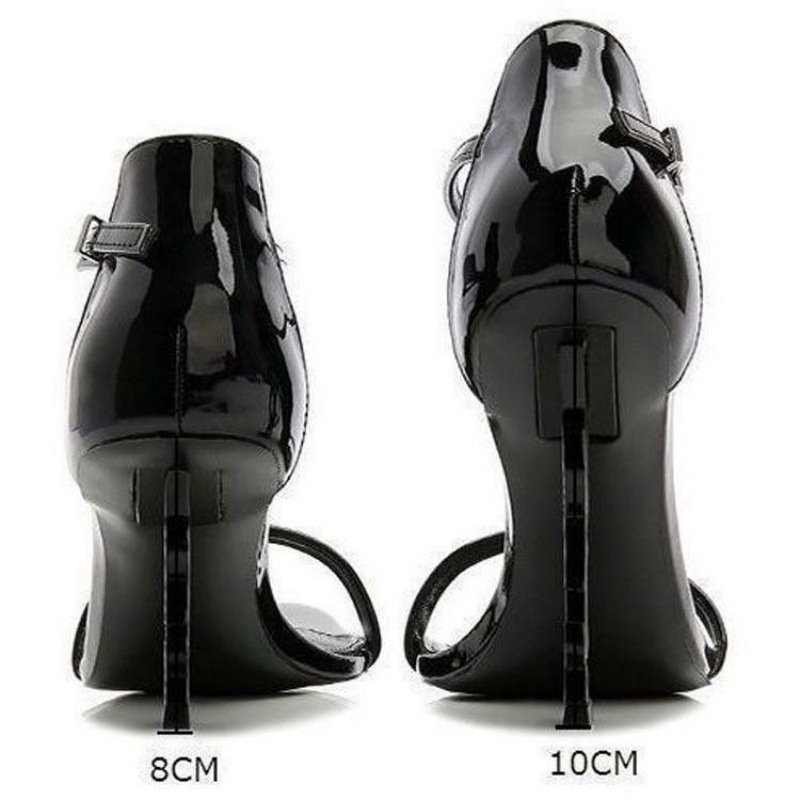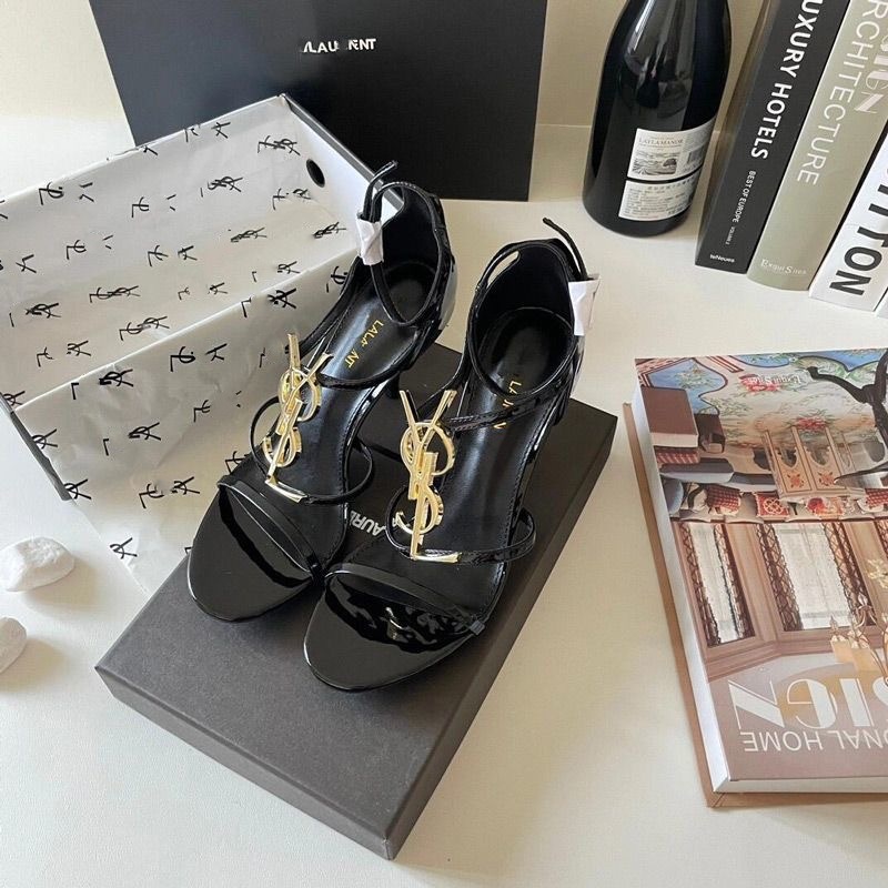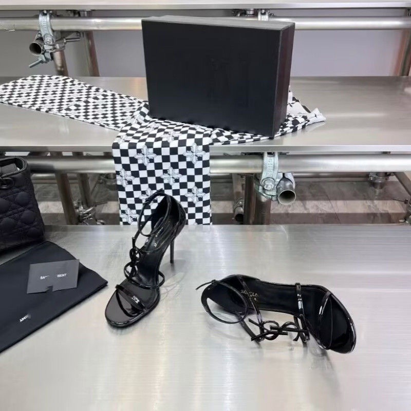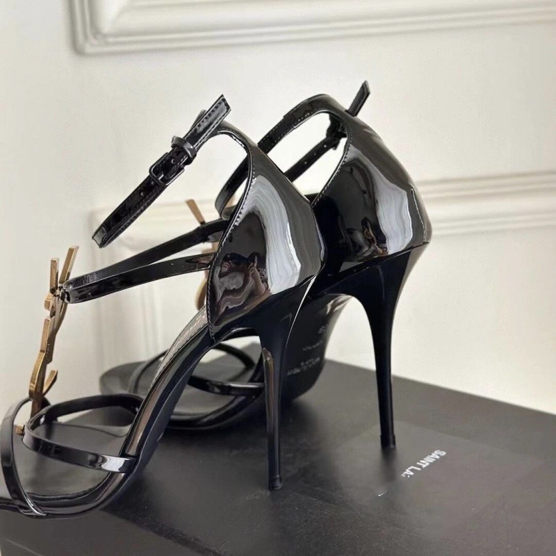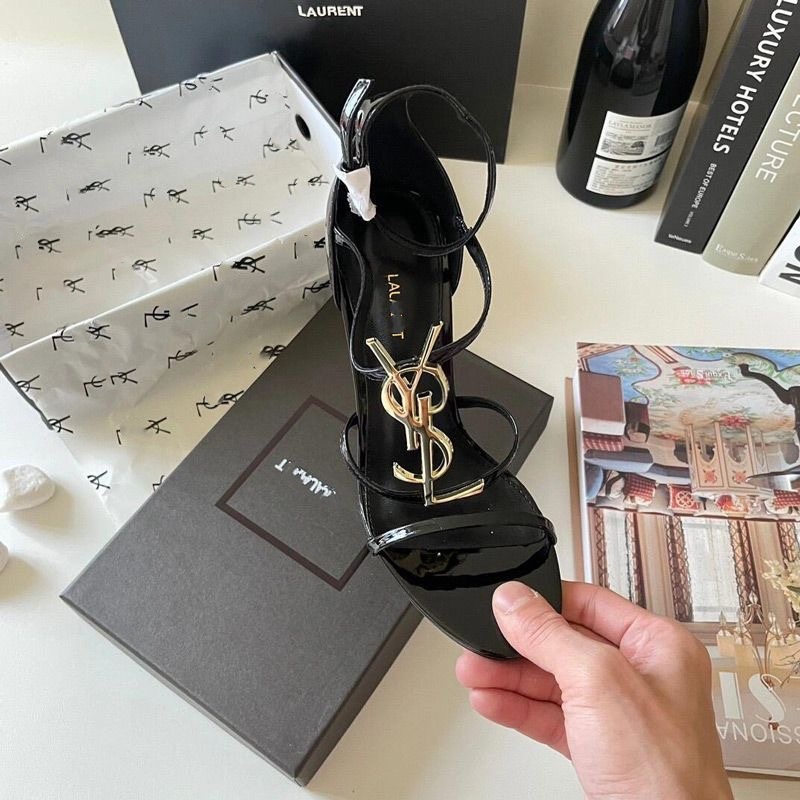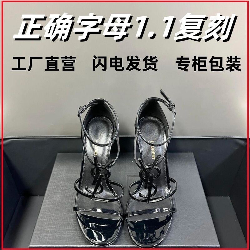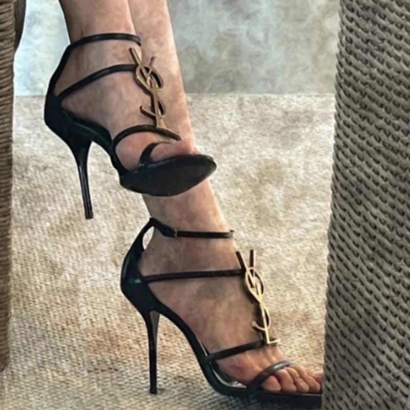 여성을위한 프랑스 스타일 하이힐 2025 여름 새로운 골드 문자 로고 스틸레토 섹시한 오픈 발가락 원 스트랩 샌들스토어 가기