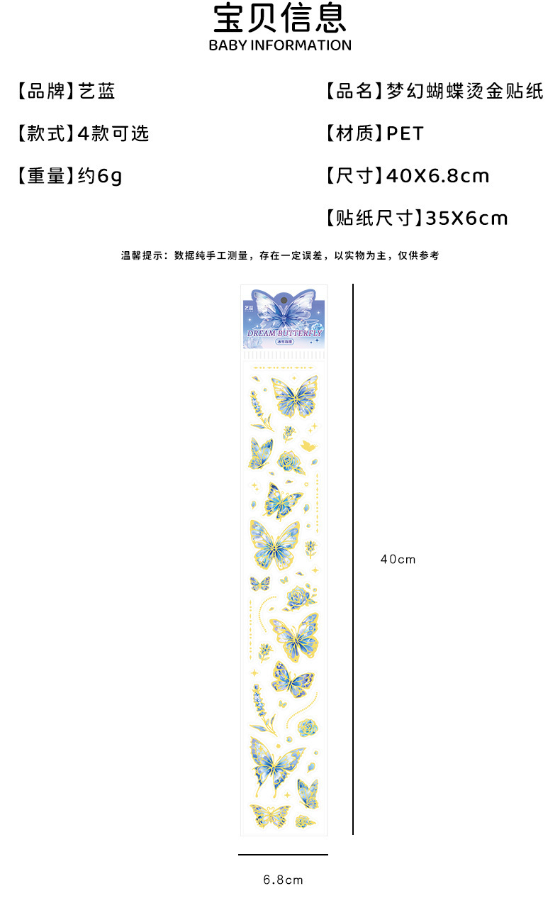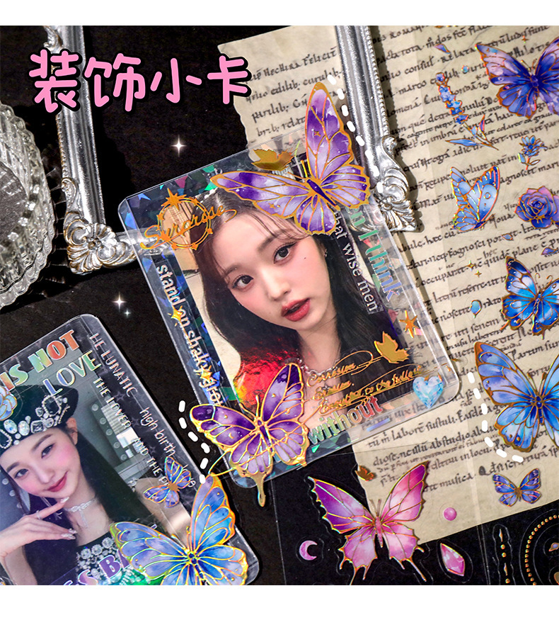 국경 간 PET 핫 스탬핑 방수 핸드북 스티커 판타지 나비 핸드북 장식 콜라주 소재 휴대 전화 케이스 워터 컵 스티커스토어 가기