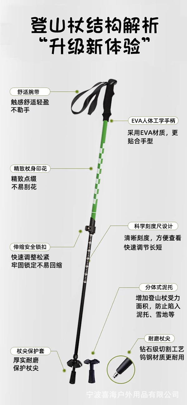 어린이용 등산 지팡이, 전문 야외 등산 및 하이킹 장비, 지팡이, 남성용 및 여성용 초경량 접이식 텔레스코픽 지팡이