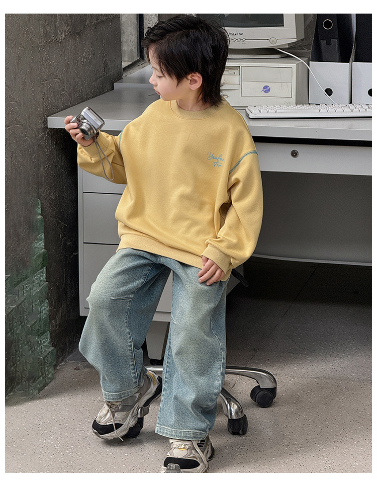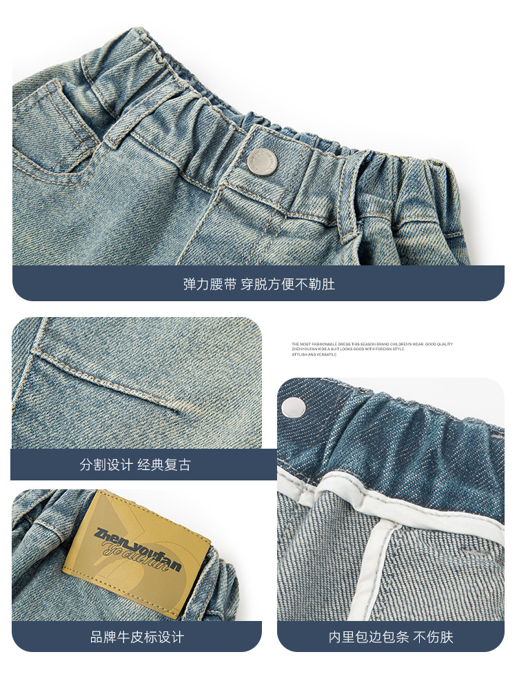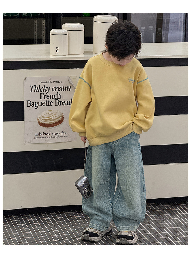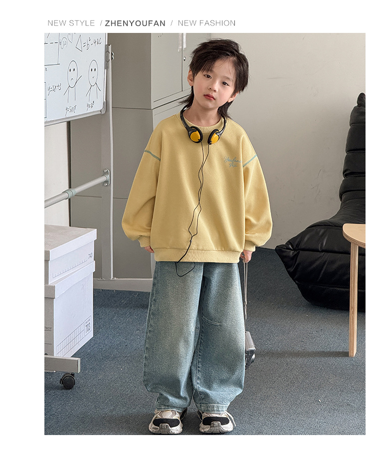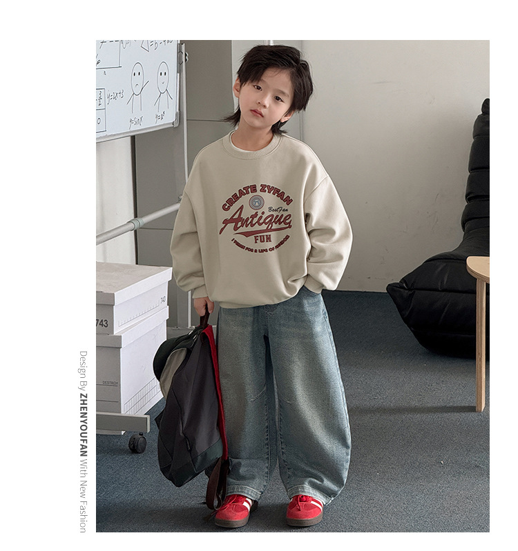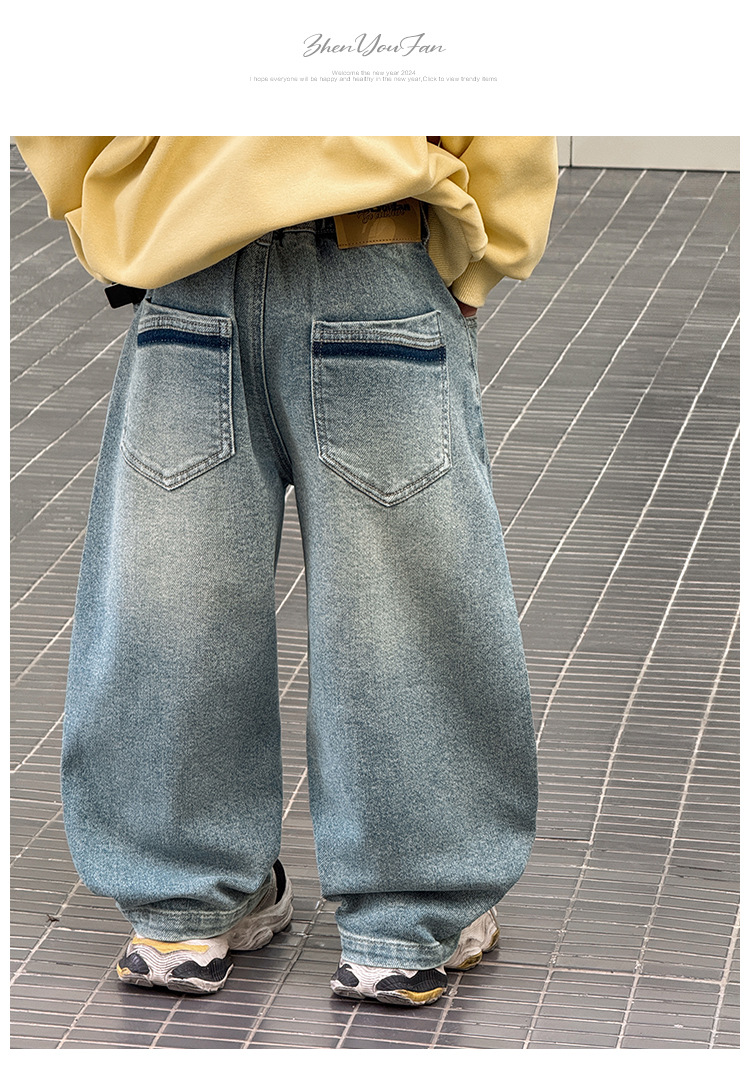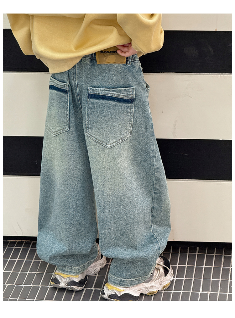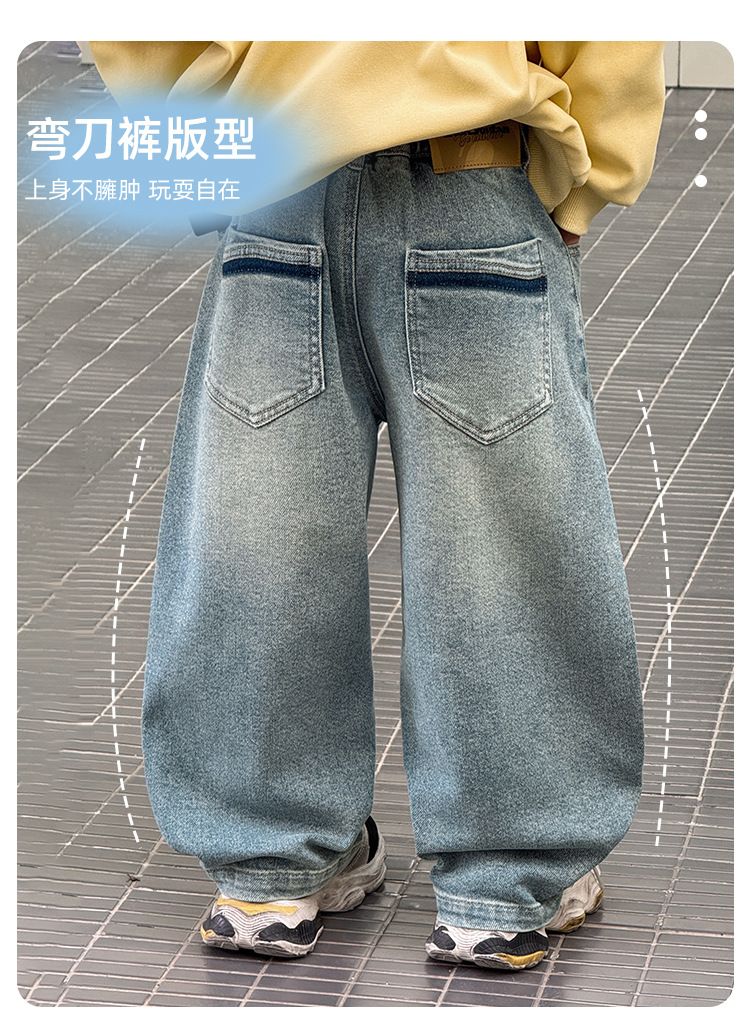 Zhengpinxuan 아동복 소년 청바지 2025 가을 새로운 스타일 아동 스타일 세이버 바지 중대형 아동 봄, 가을 바지