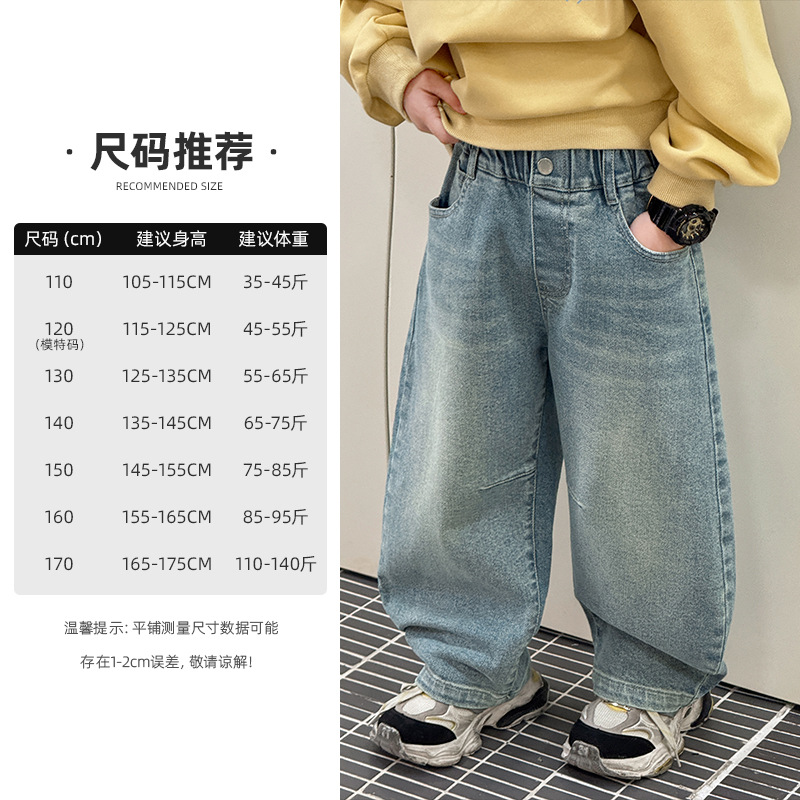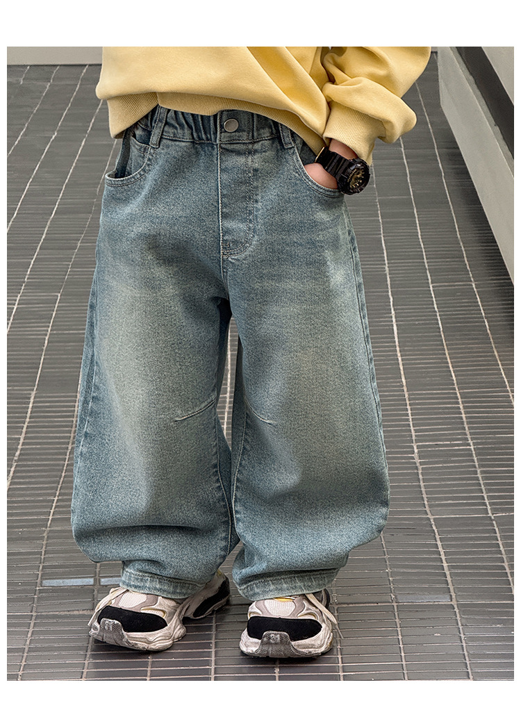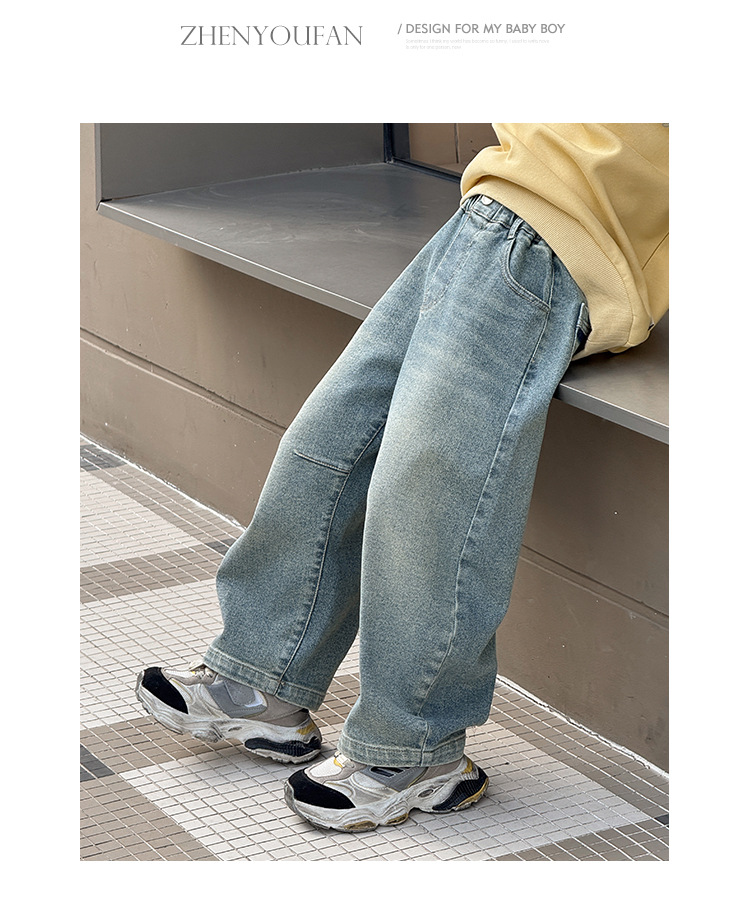 Zhengpinxuan 아동복 소년 청바지 2025 가을 새로운 스타일 아동 스타일 세이버 바지 중대형 아동 봄, 가을 바지스토어 가기