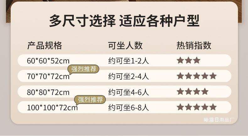 • 원래 색상 두꺼워진 80cm 원형 표면 [설치가 필요 없고 보관이 용이함] 테이블 높이 72CM
