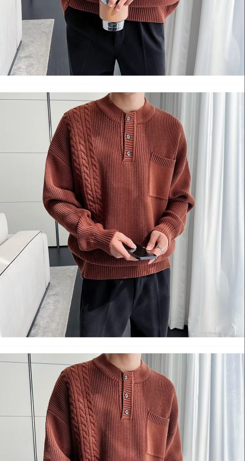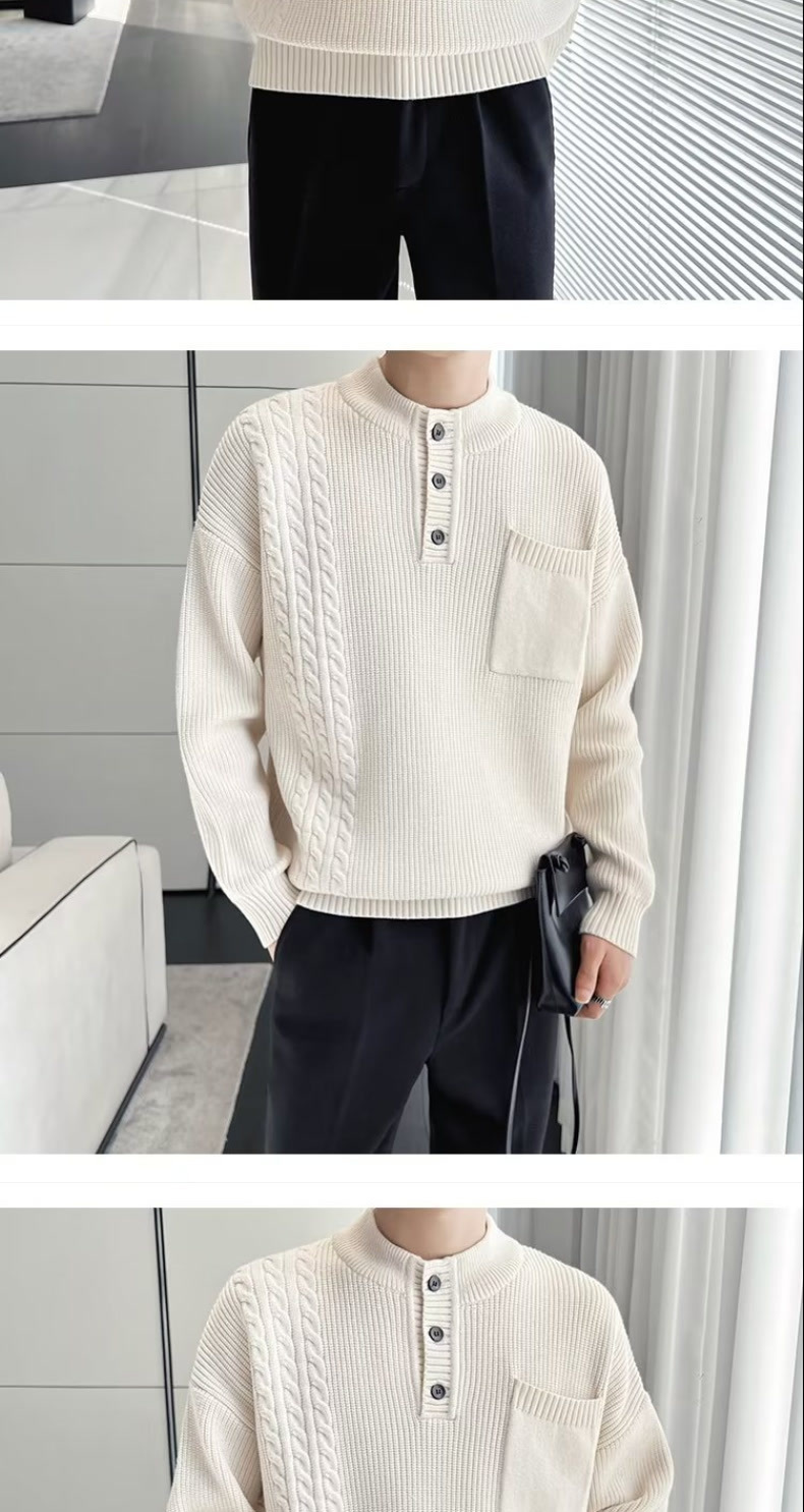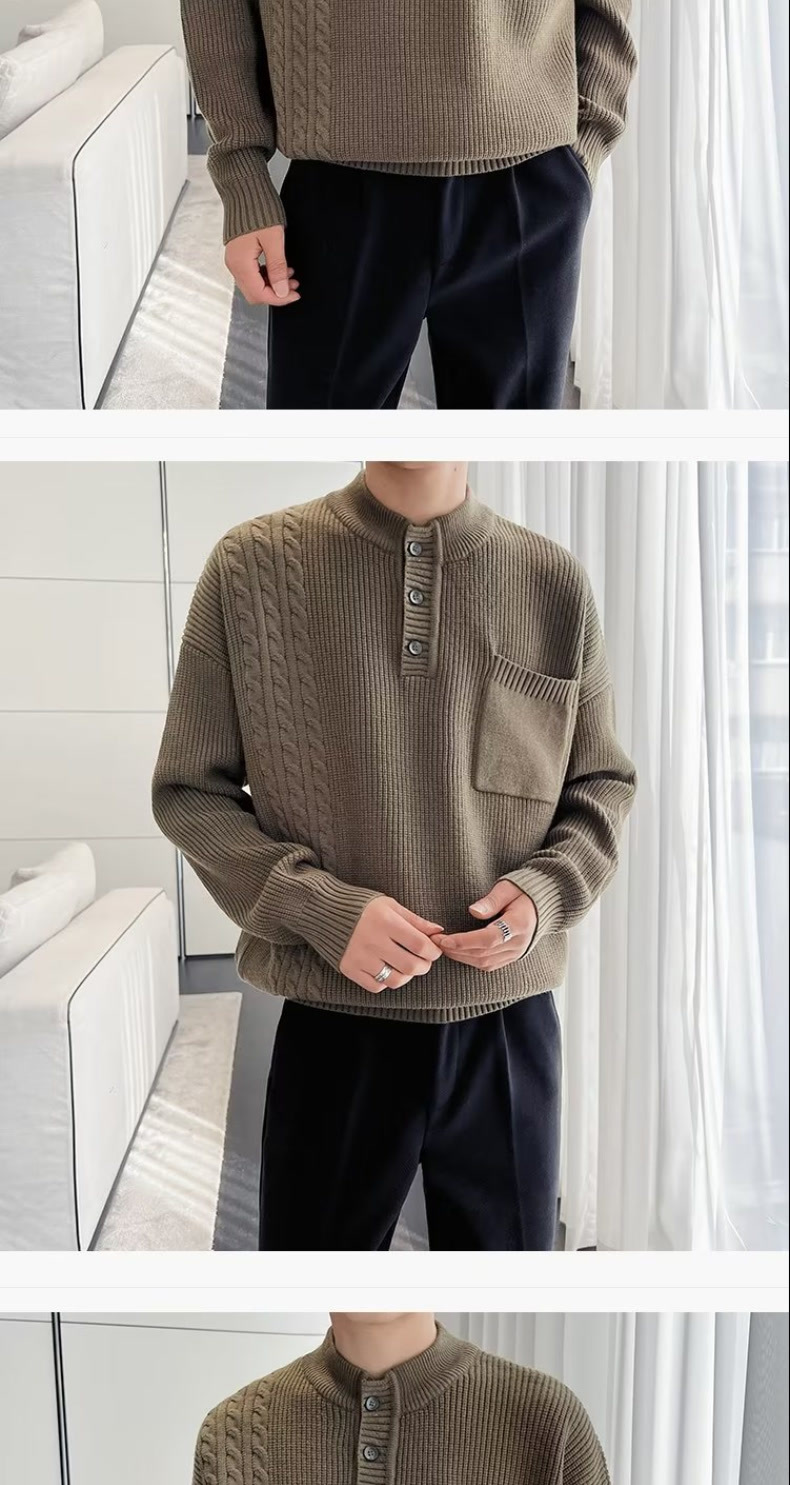 2025 일본 레트로 스웨터 남성용 겨울 트렌드 브랜드 단색 루즈핏 이너 니트 스웨터 트렌디하고 다용도스토어 가기