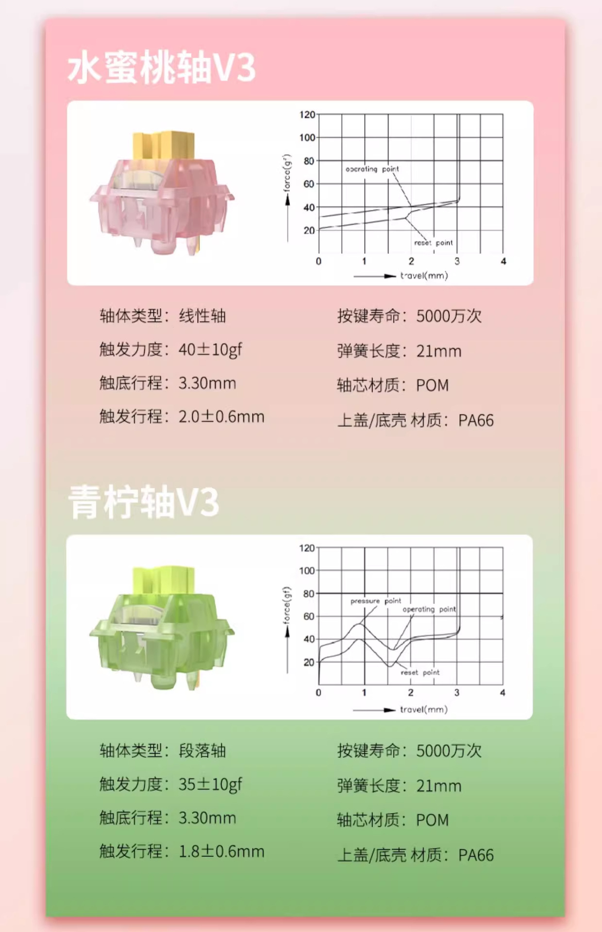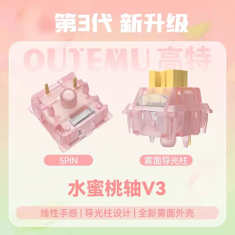 Gaote Silent V3 복숭아 축 라임 축 V3 맞춤형 기계식 키보드 핫 스왑 가능 DIY 키 스위치스토어 가기