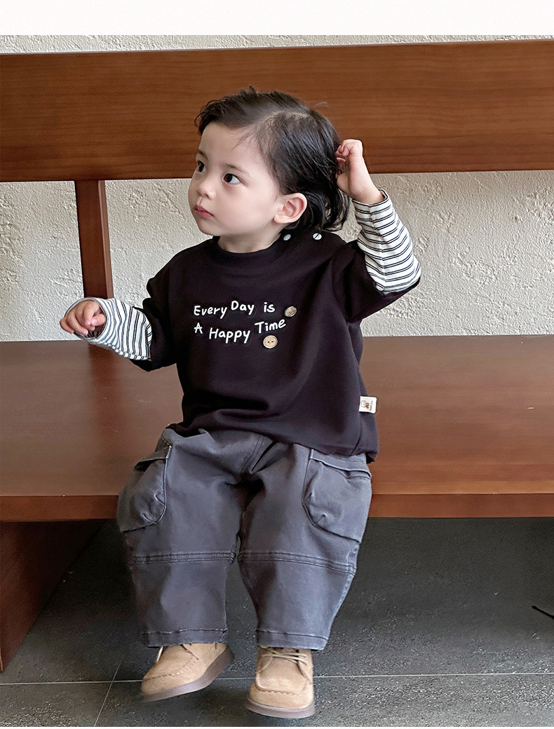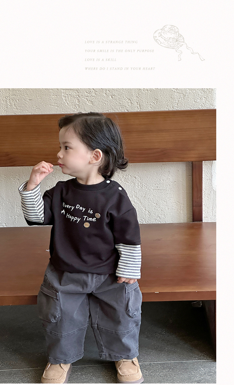 2025 새로운 봄, 가을 작은 소년 정장 유행 브랜드 가짜 투피스 스웨트 셔츠 + 유행 작업복 아기 소년 투피스 세트 1스토어 가기