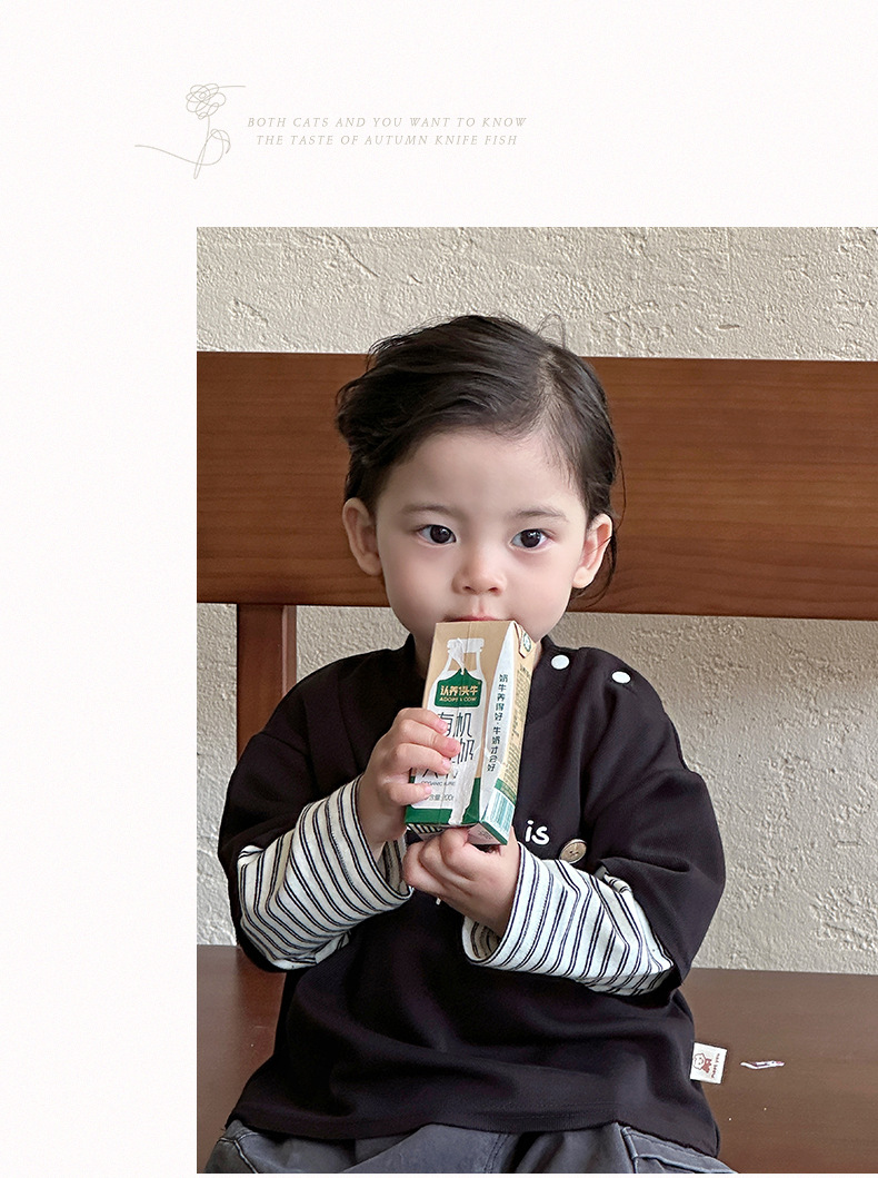 2025 새로운 봄, 가을 작은 소년 정장 유행 브랜드 가짜 투피스 스웨트 셔츠 + 유행 작업복 아기 소년 투피스 세트 1
