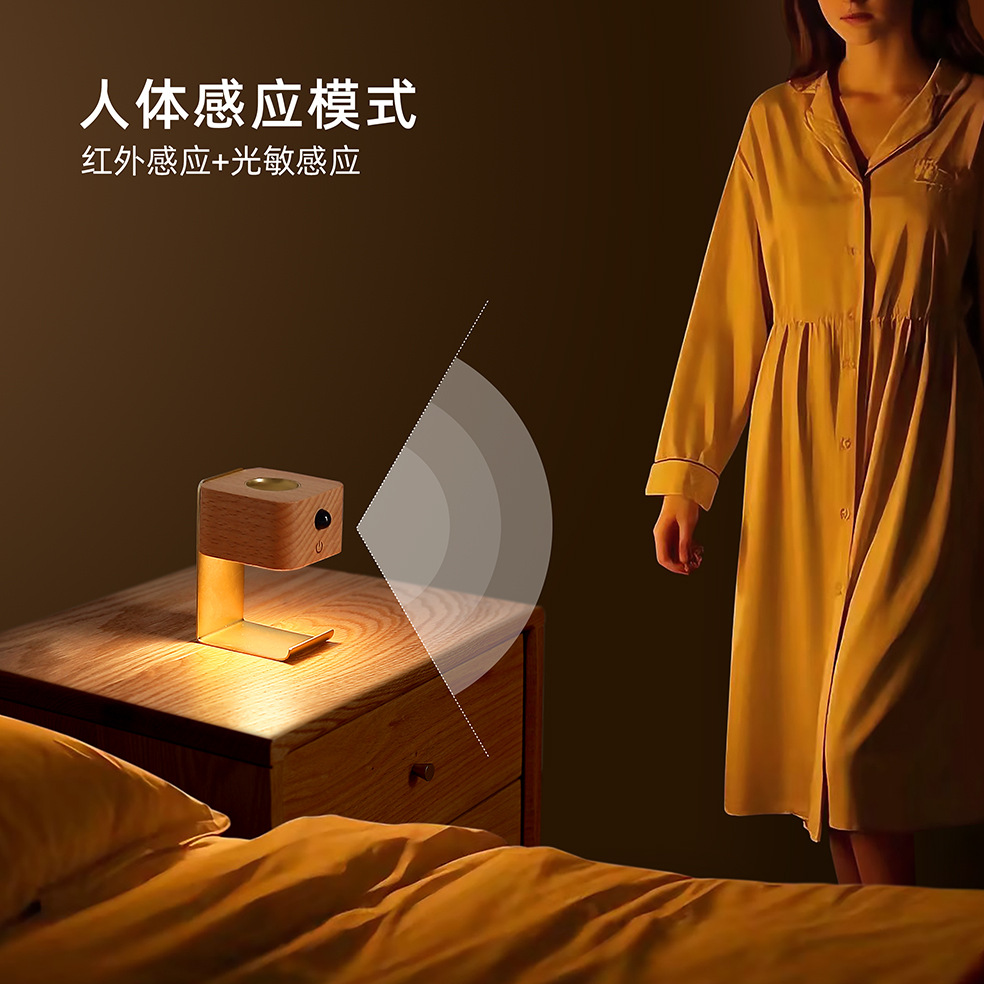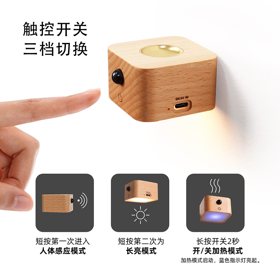 2025 새로운 단단한 나무 지능형 유도 아로마 테라피 야간 조명 펀치없는 에센셜 오일 가열 자기 흡입 설치 아로마 테라피 램프스토어 가기