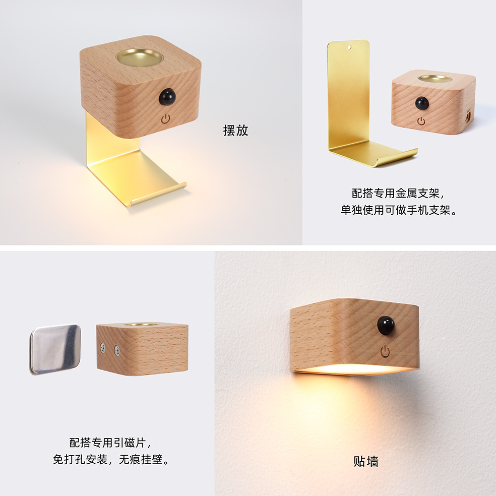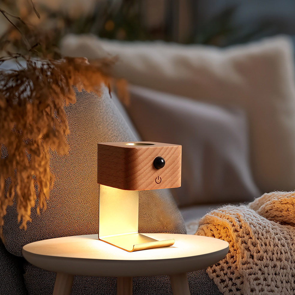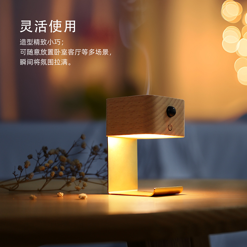 2025 새로운 단단한 나무 지능형 유도 아로마 테라피 야간 조명 펀치없는 에센셜 오일 가열 자기 흡입 설치 아로마 테라피 램프