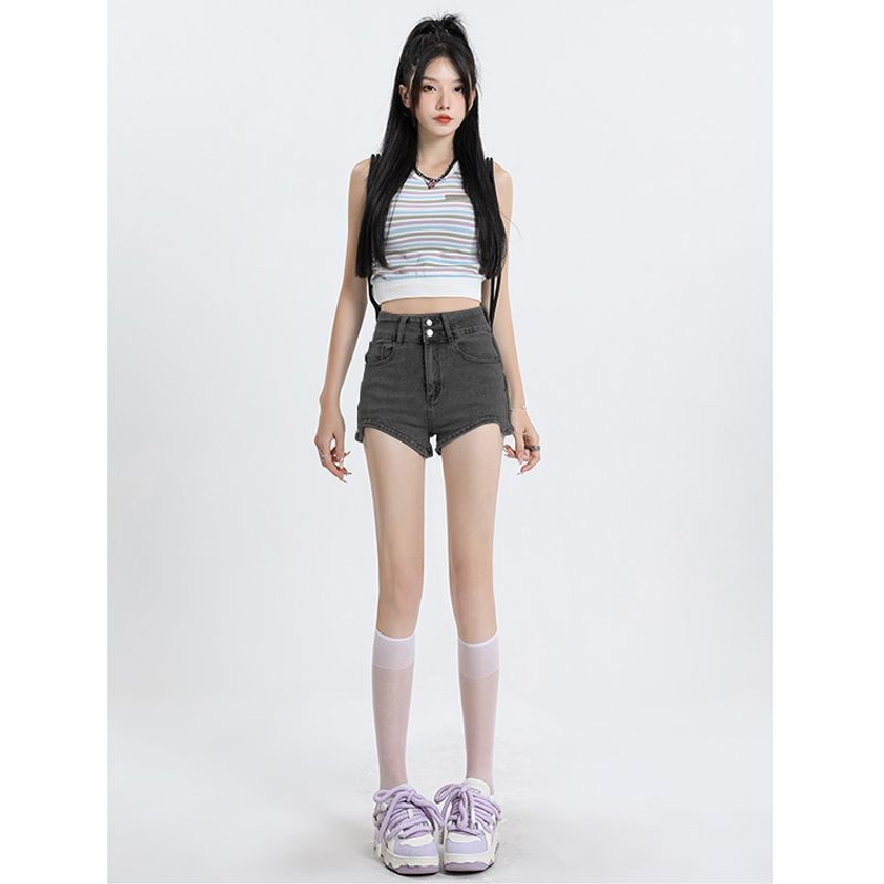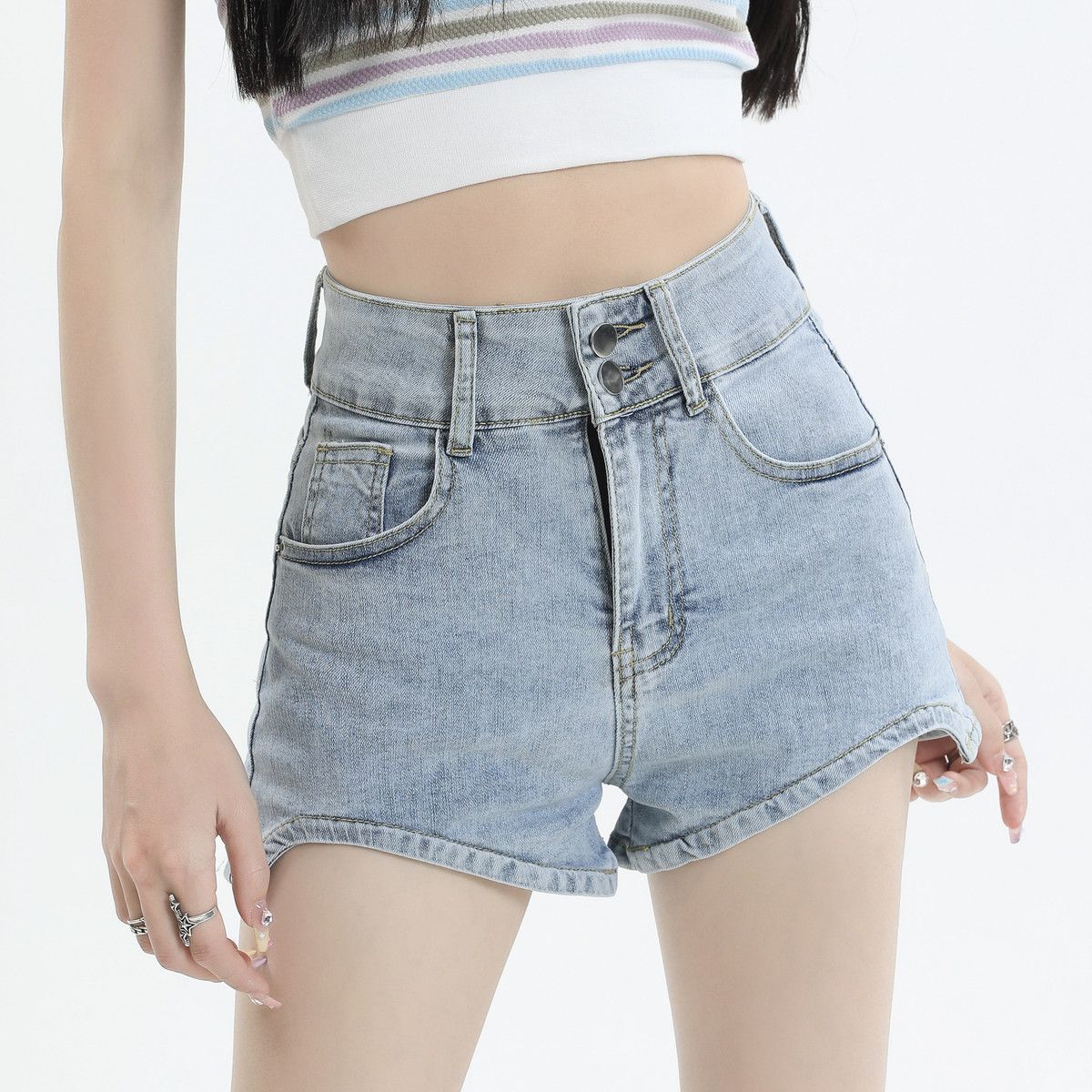 2025 다리가 길어지는 블랙 다용도 데님 반바지 얇은 여름 A라인 핫팬츠 신축성 있는 여성용 투버튼