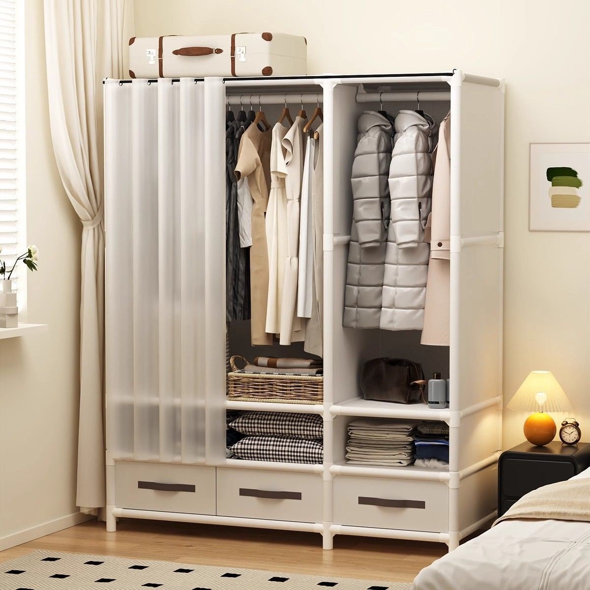 옷장, 침실, 집 임대용 간단한 천 옷장, 튼튼하고 내구성이 뛰어난 방진 걸이 옷장