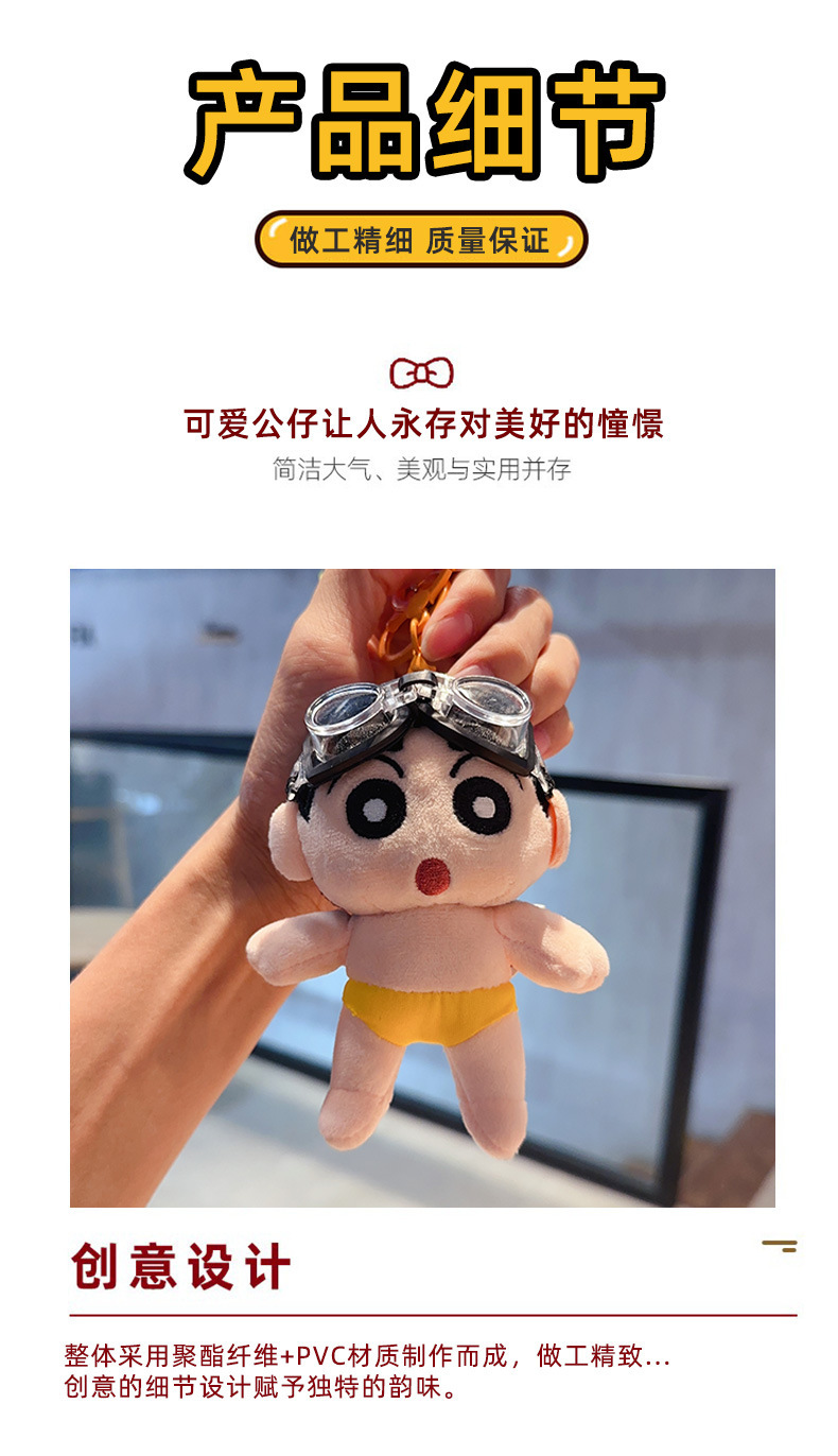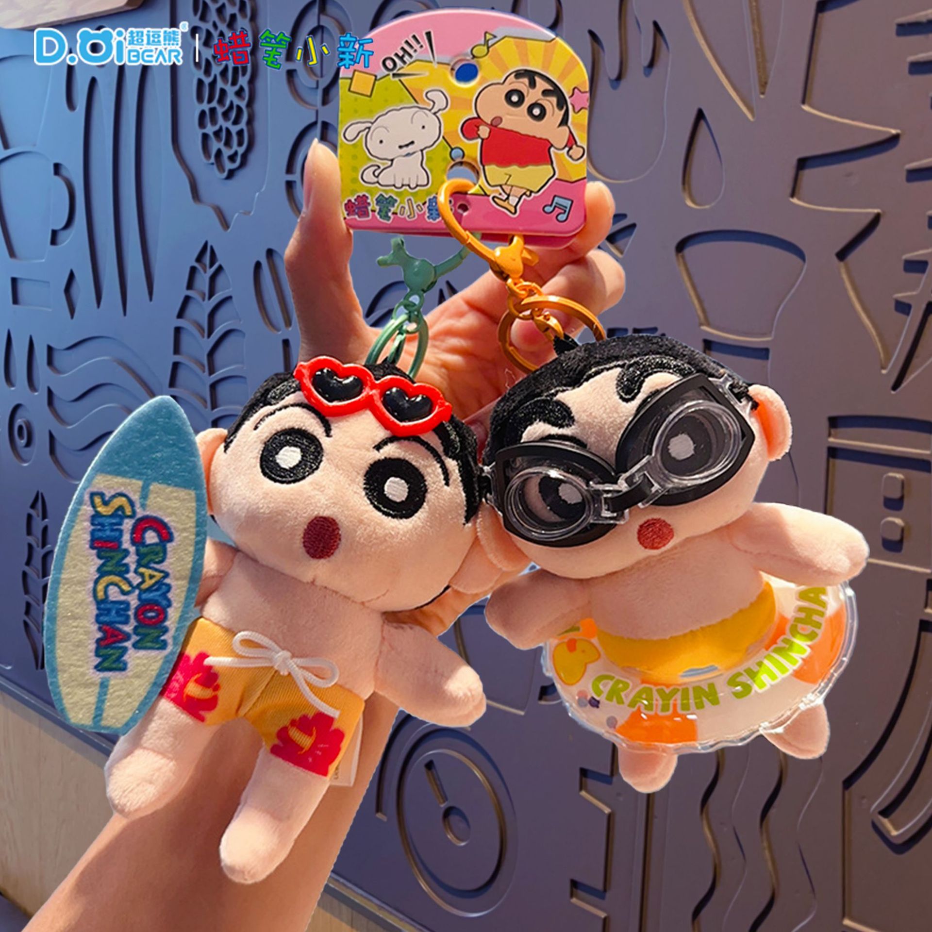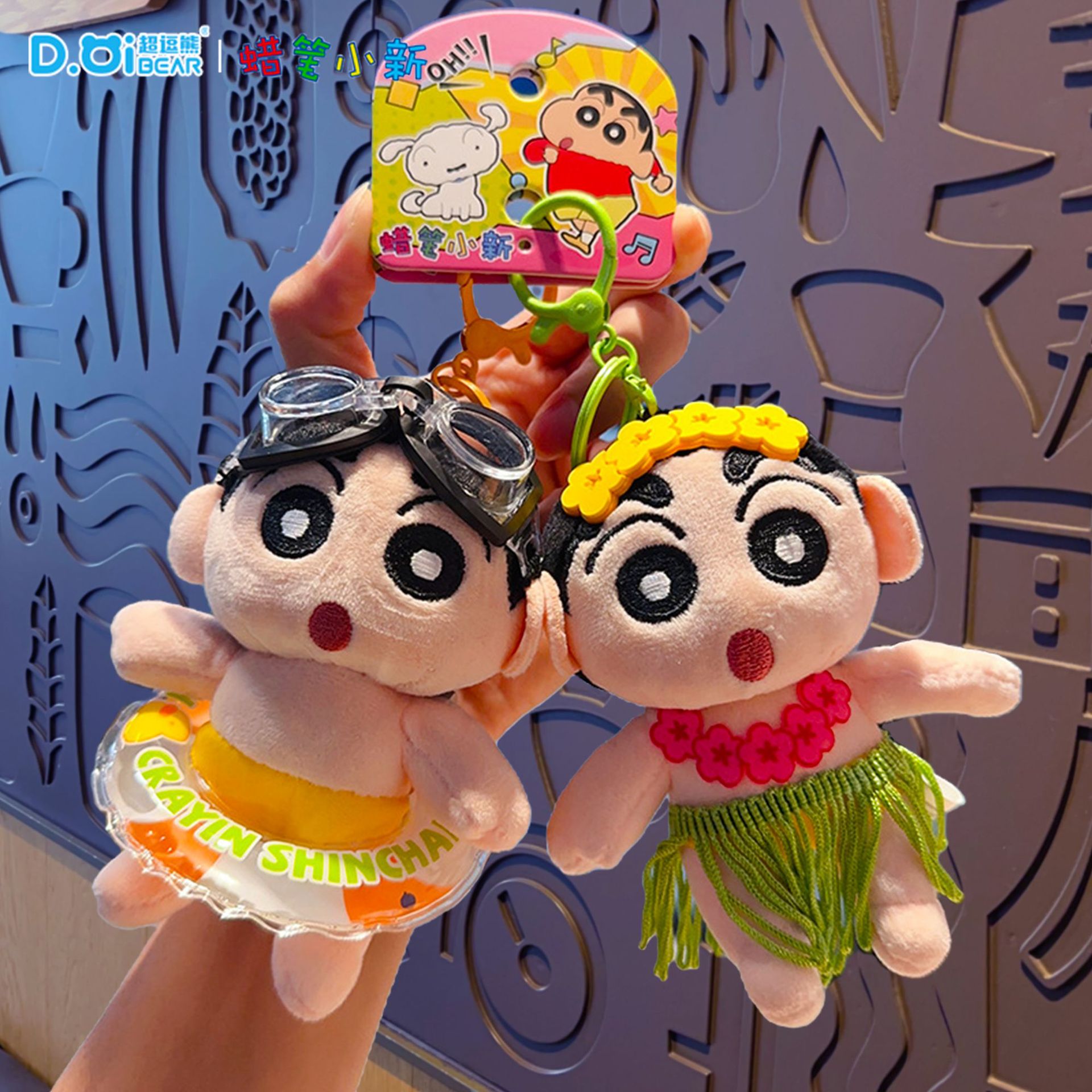 정품 바다 파란색 휴일 플러시 크레용 신짱 키 체인 펜던트 귀여운 인형 학교 가방 펜던트 인형 기계 도매스토어 가기