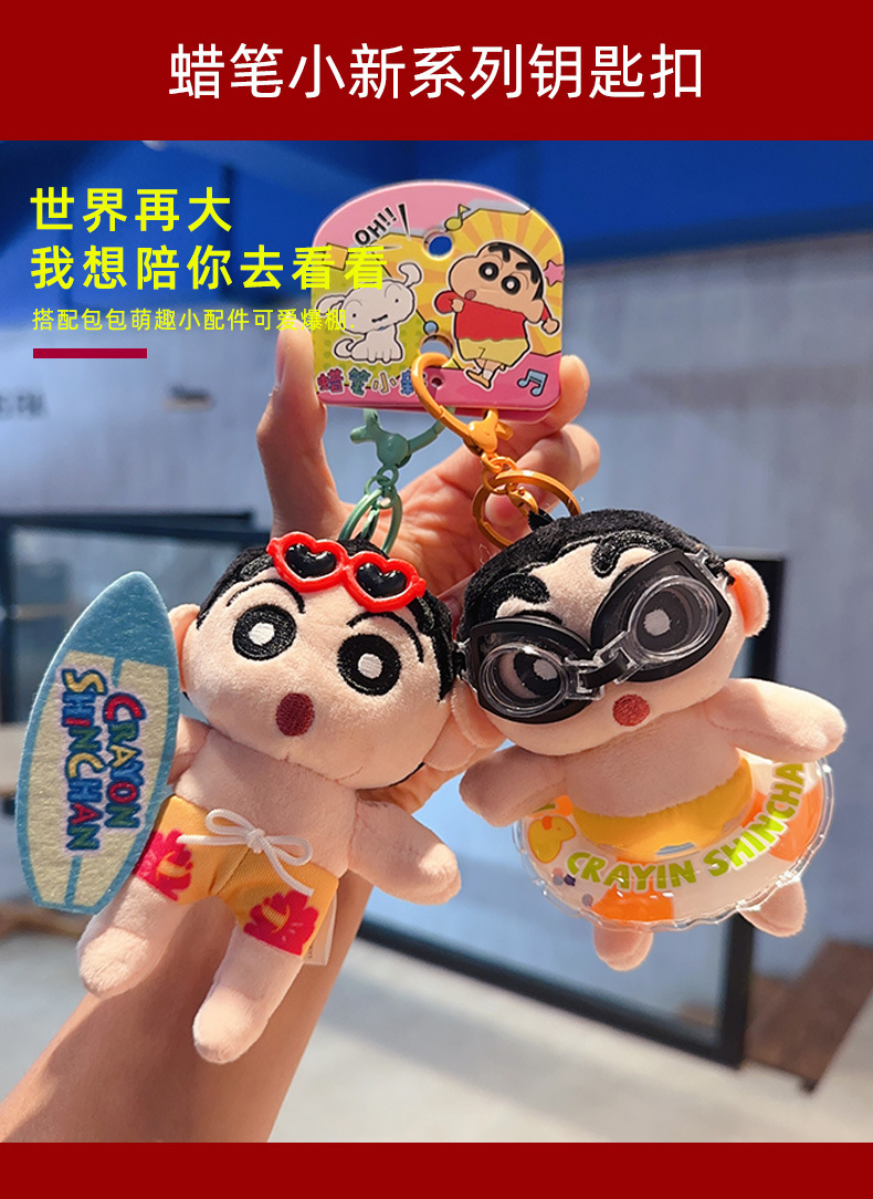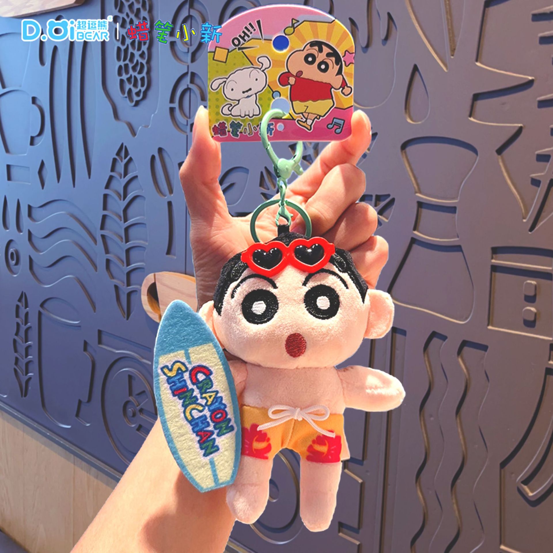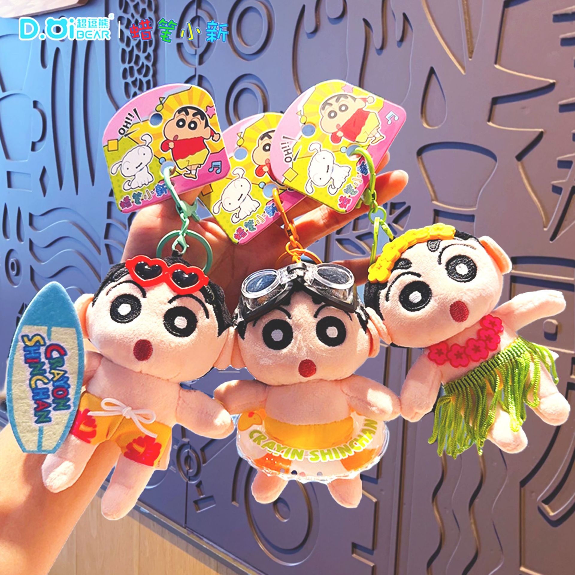정품 바다 파란색 휴일 플러시 크레용 신짱 키 체인 펜던트 귀여운 인형 학교 가방 펜던트 인형 기계 도매
