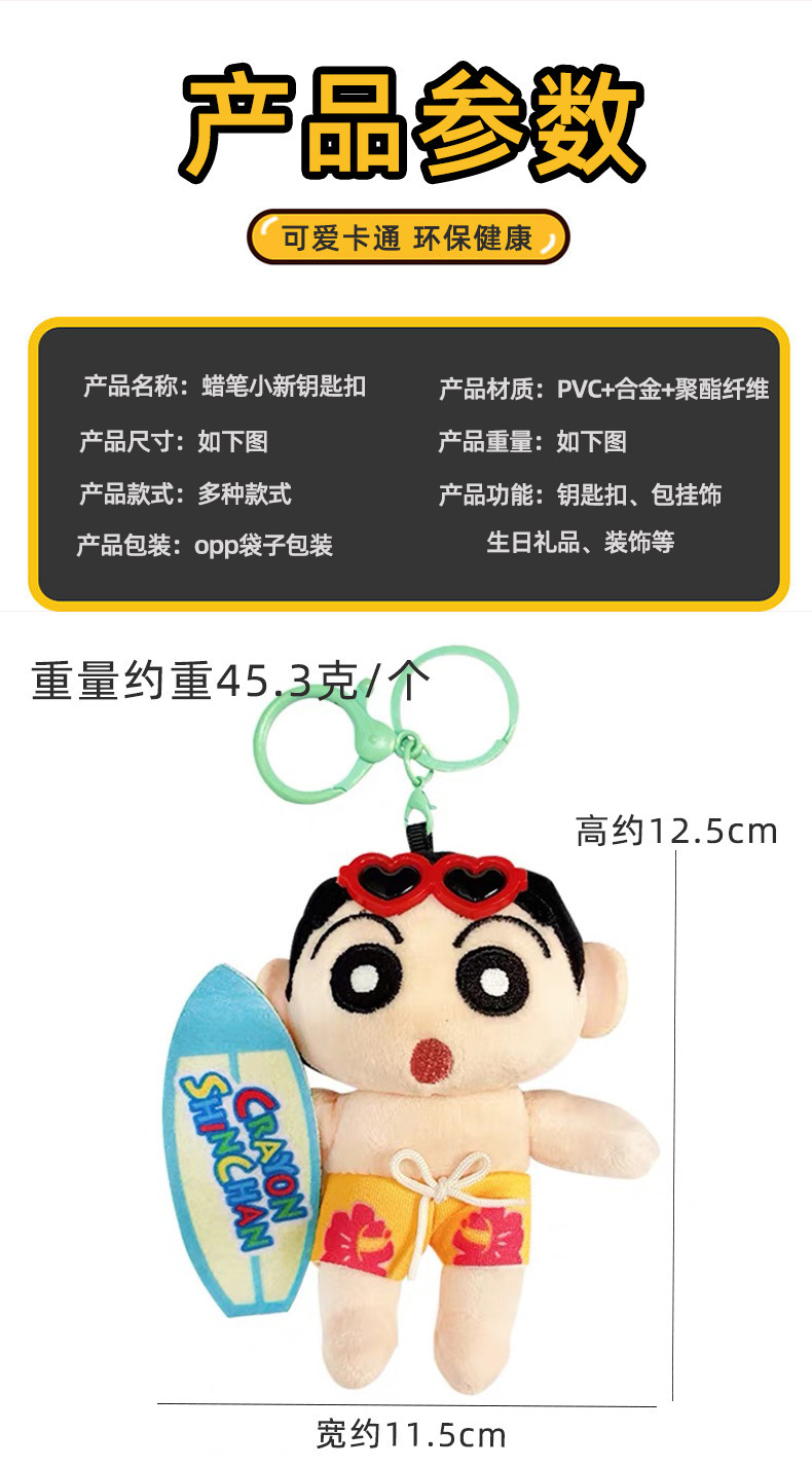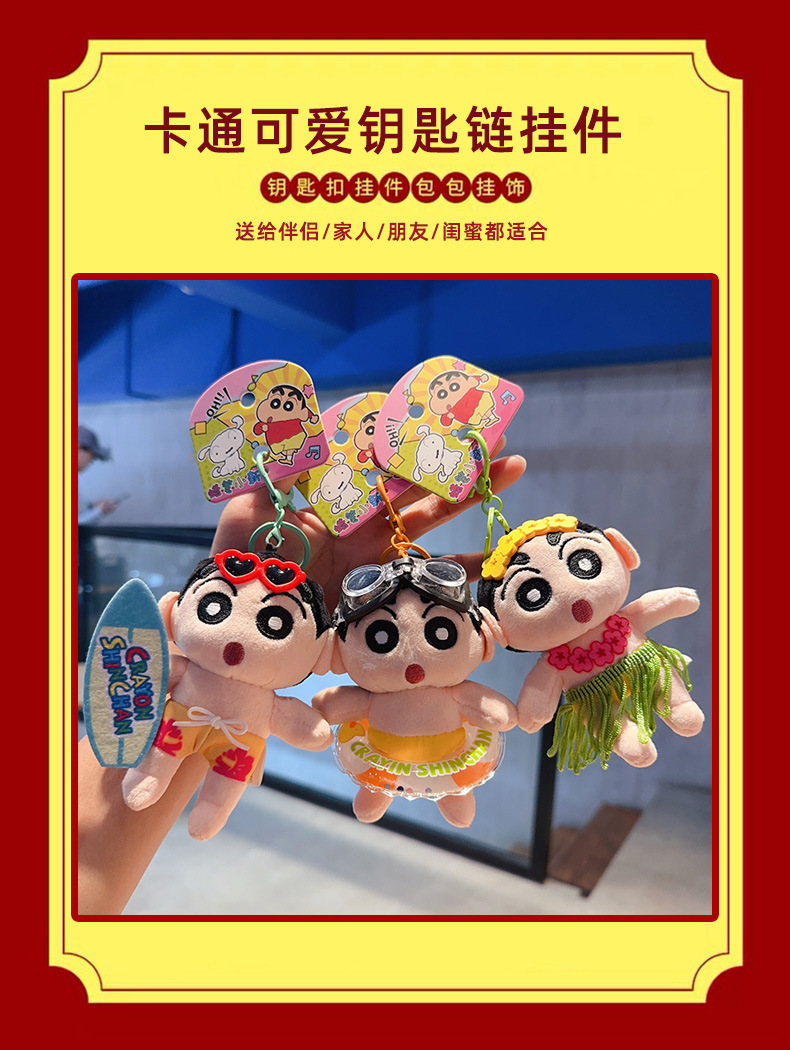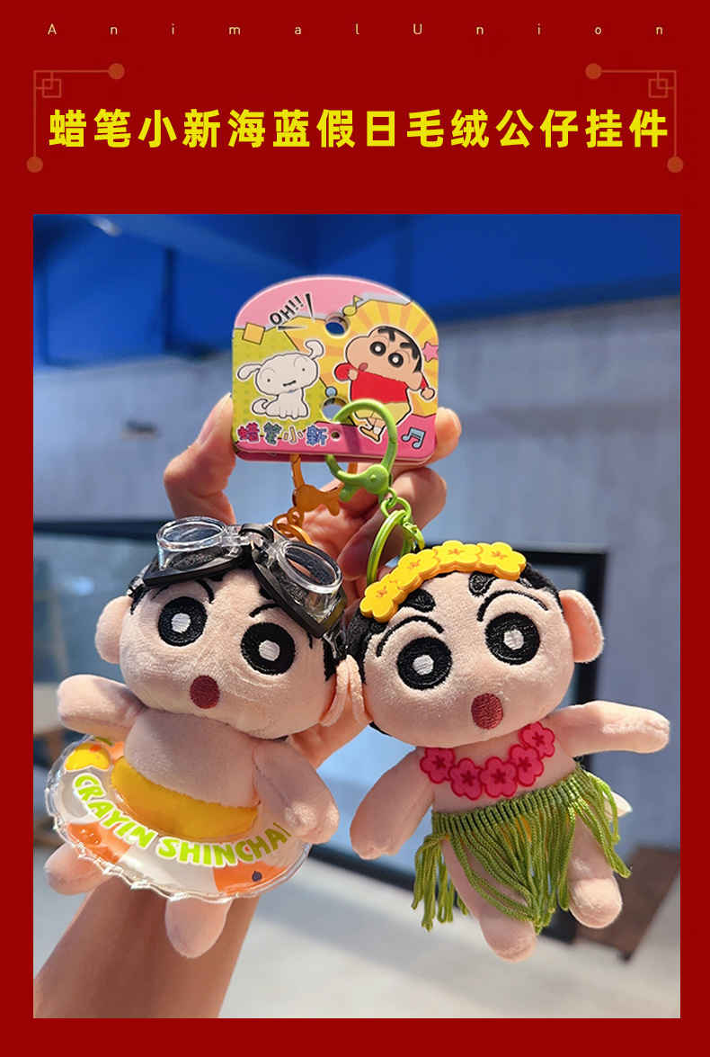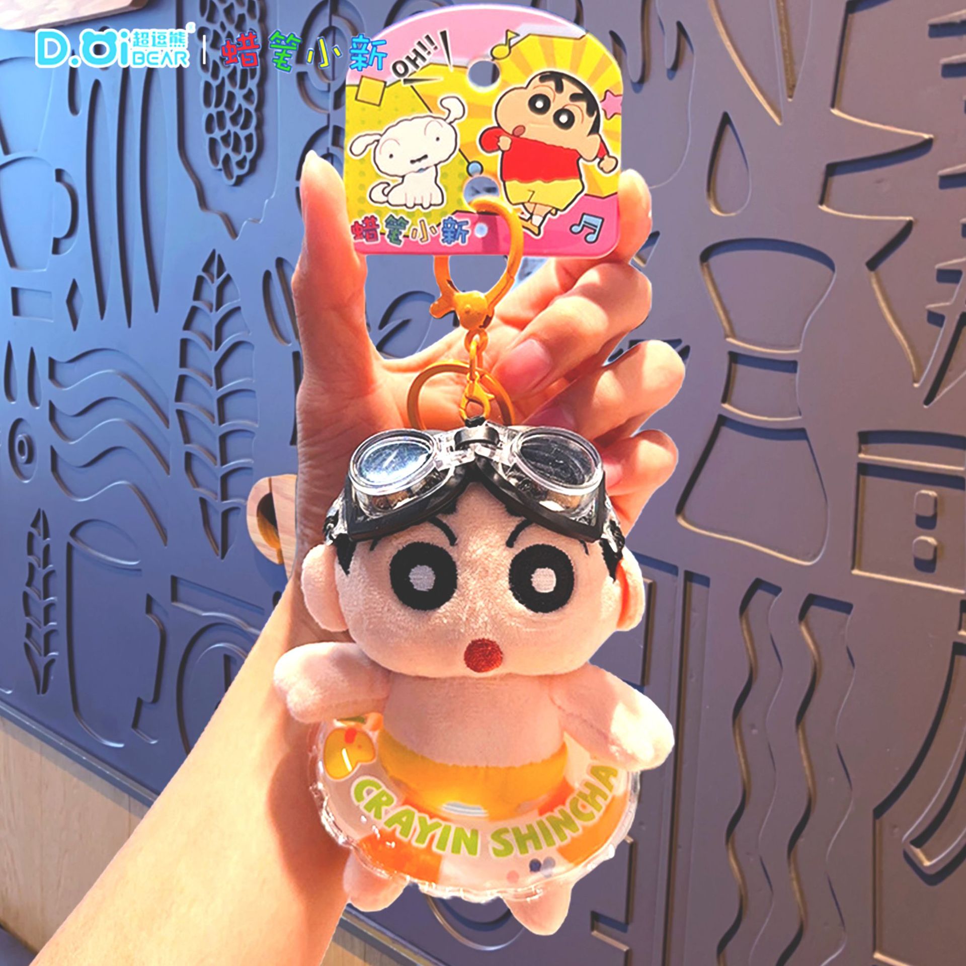 정품 바다 파란색 휴일 플러시 크레용 신짱 키 체인 펜던트 귀여운 인형 학교 가방 펜던트 인형 기계 도매