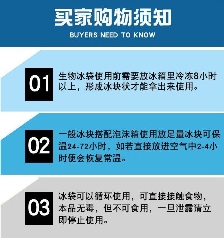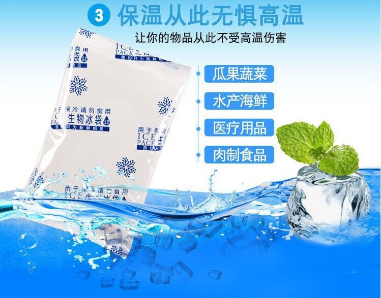 生物冰袋规格有50-100-150-200-250-300克,下单就安排发货,最迟48小时内发货,每个地区运费不一样价格也有一点区别,请按照地区下单,没有选到相对应地区不支持发货,使用方法:收到货以后直接放冷库冷冻就可以,无需注水,高效保冷【温馨提示:因为生物冰袋比较重,运费比较贵,发出去以后就不支持退款了,介意勿拍】