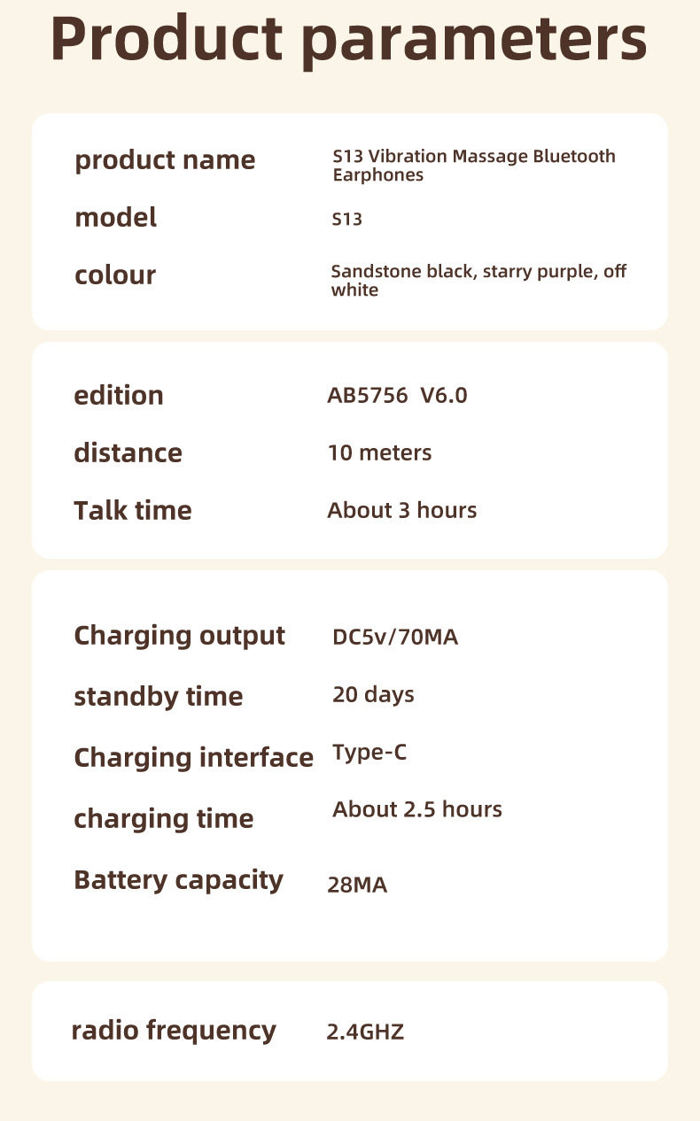 2025년 신형 S13 무선 보이지 않는 블루투스 수면 이어폰, 옆으로 자는 경우에도 귀에 압박 없이 진동 마사지 기능으로 스트레스 해소스토어 가기