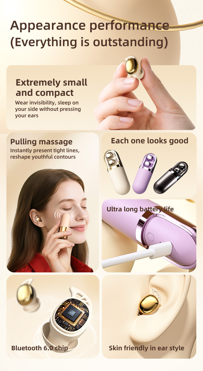 2025년 신형 S13 무선 보이지 않는 블루투스 수면 이어폰, 옆으로 자는 경우에도 귀에 압박 없이 진동 마사지 기능으로 스트레스 해소