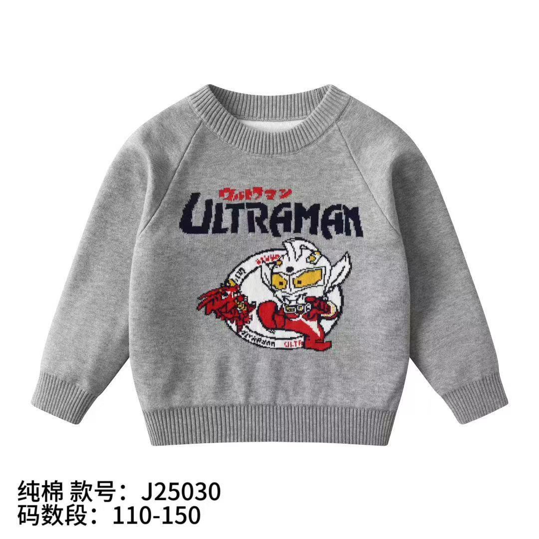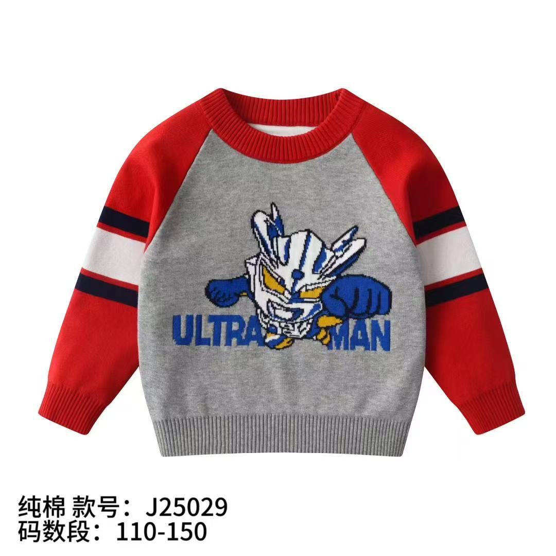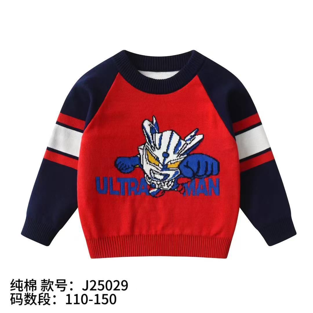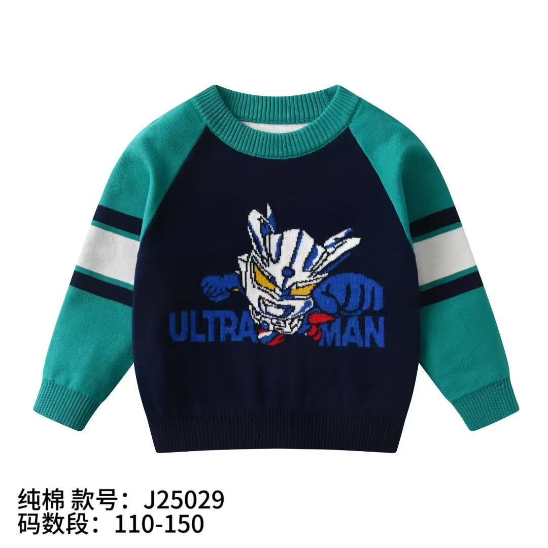 소년 스웨터 도매 2025 가을, 겨울 새로운 아동 의류 소년 만화 자카드 더블 레이어 면사 바닥 스웨터
