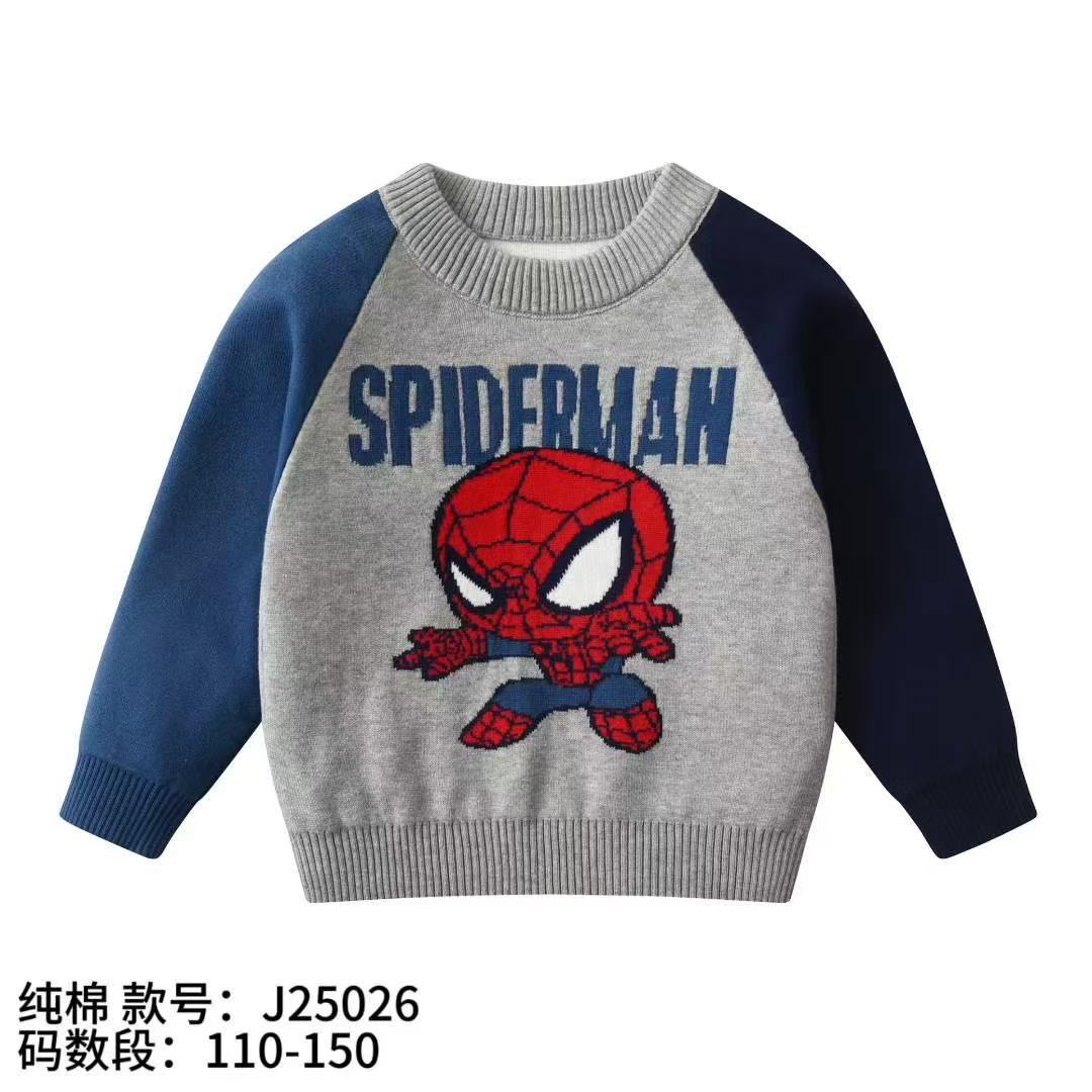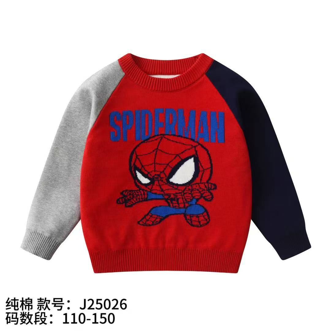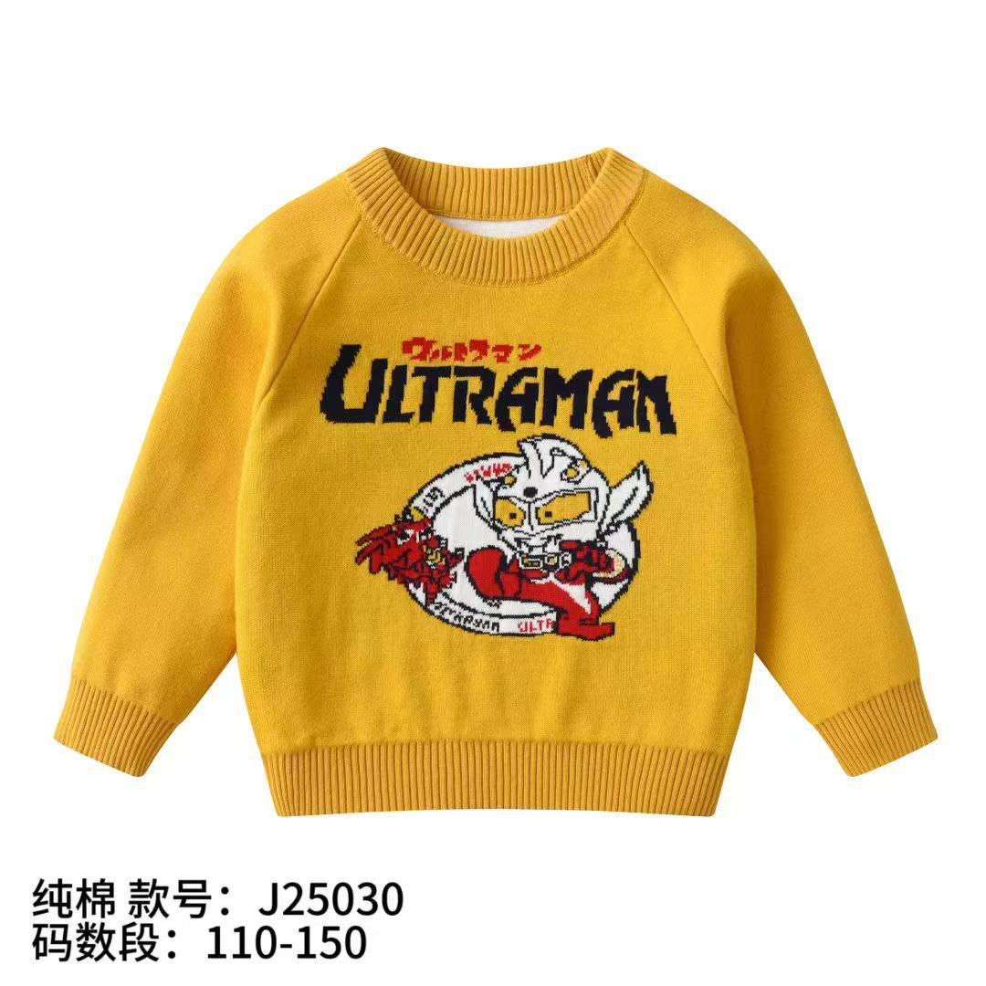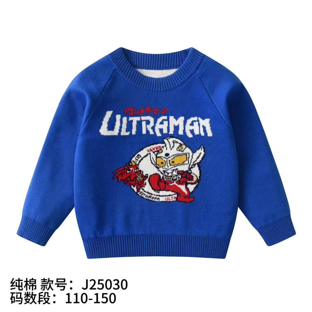 소년 스웨터 도매 2025 가을, 겨울 새로운 아동 의류 소년 만화 자카드 더블 레이어 면사 바닥 스웨터