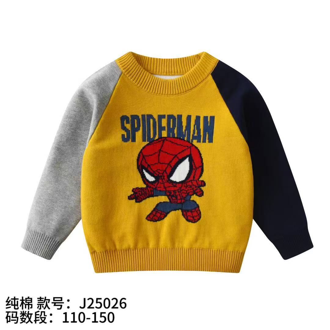 소년 스웨터 도매 2025 가을, 겨울 새로운 아동 의류 소년 만화 자카드 더블 레이어 면사 바닥 스웨터스토어 가기